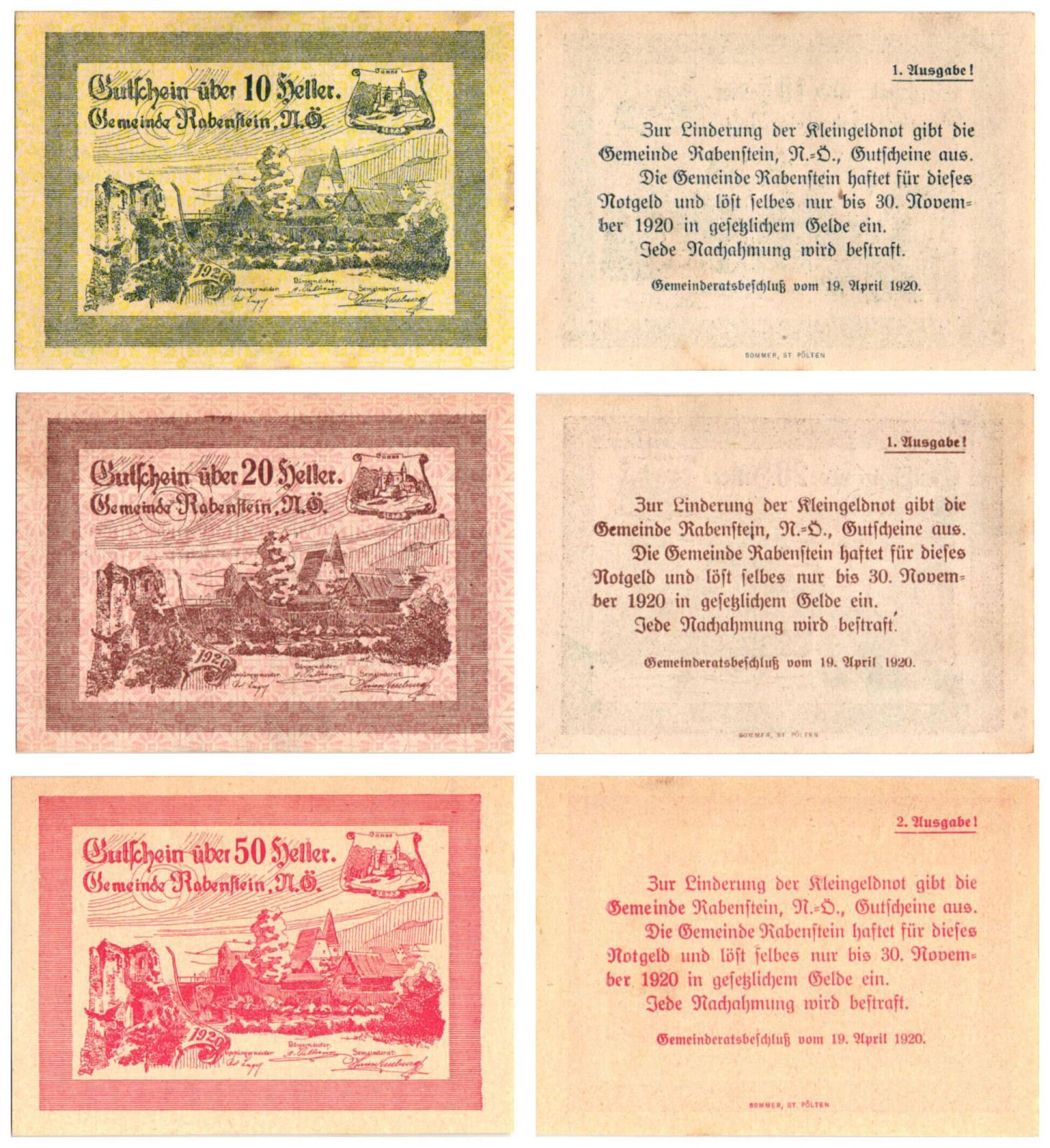 AUSTRIA Rabenstein an der Pielach 1920 local banknotes lot / Notgeld / 3 pcs. UNC
