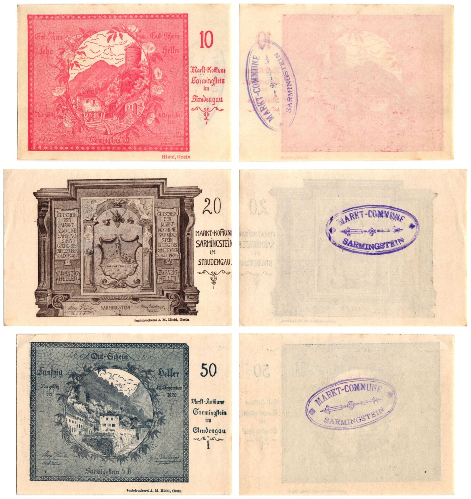 AUSTRIA Sarmingstein im Strudengau 1920 local banknotes lot / Notgeld / 3 pcs. XF