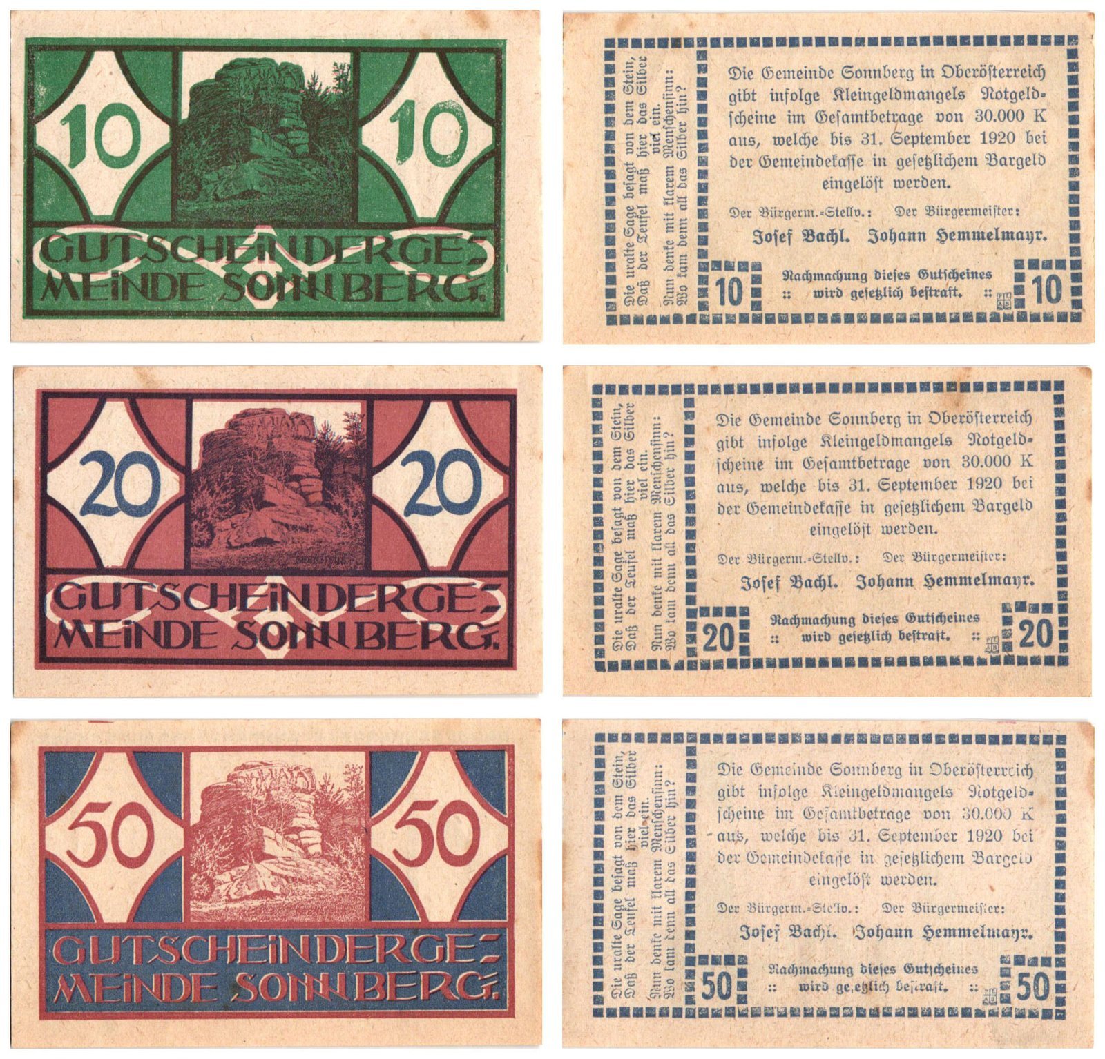 AUSTRIA Sonnberg 1920 local banknotes lot / Notgeld / 3 pcs. UNC-
