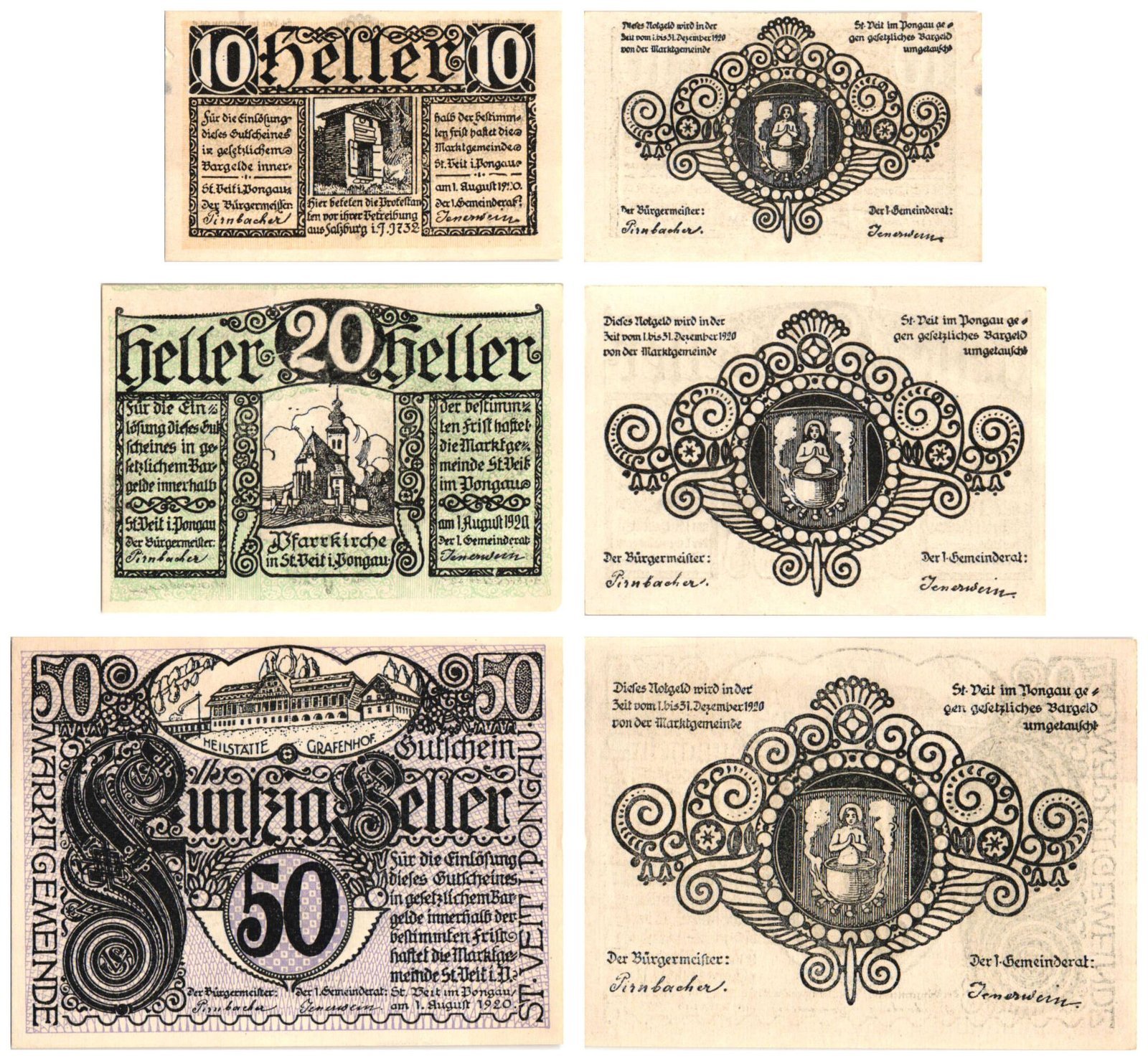 AUSTRIA St. Veit im Pongau 1920 local banknotes lot / Notgeld / 3 pcs. UNC