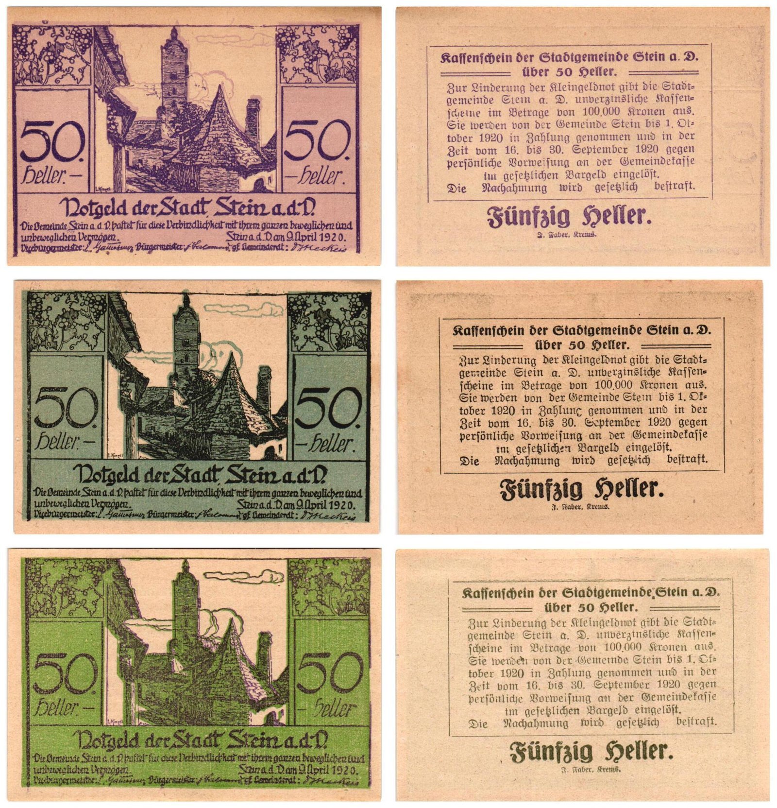 AUSTRIA Stein a. d. D. 1920 local banknotes lot / Notgeld / 3 pcs. UNC