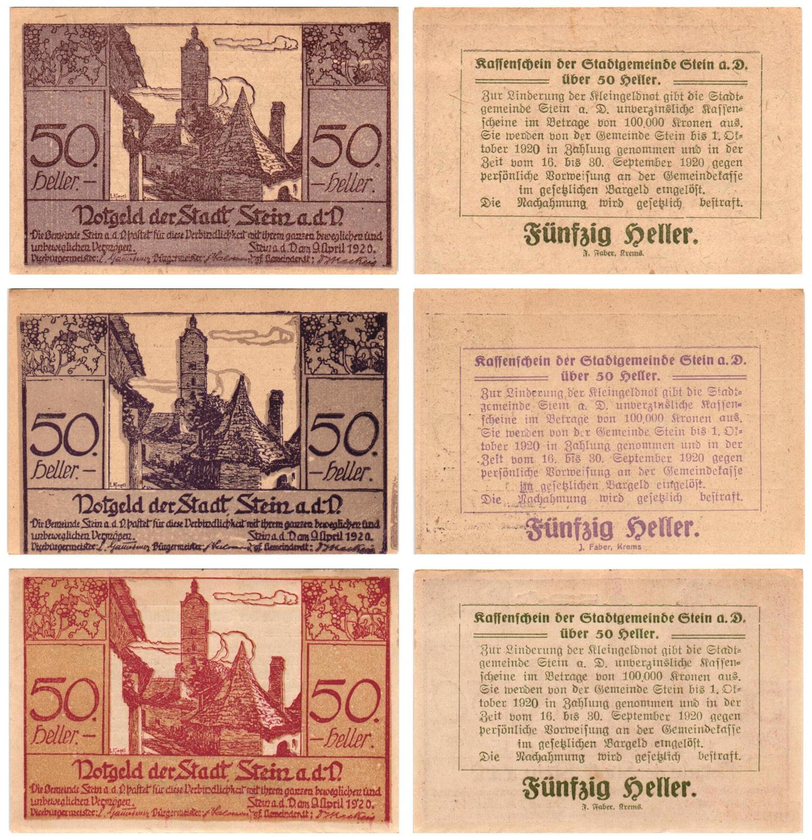 AUSTRIA Stein a. d. D. 1920 local banknotes lot / Notgeld / 3 pcs. UNC