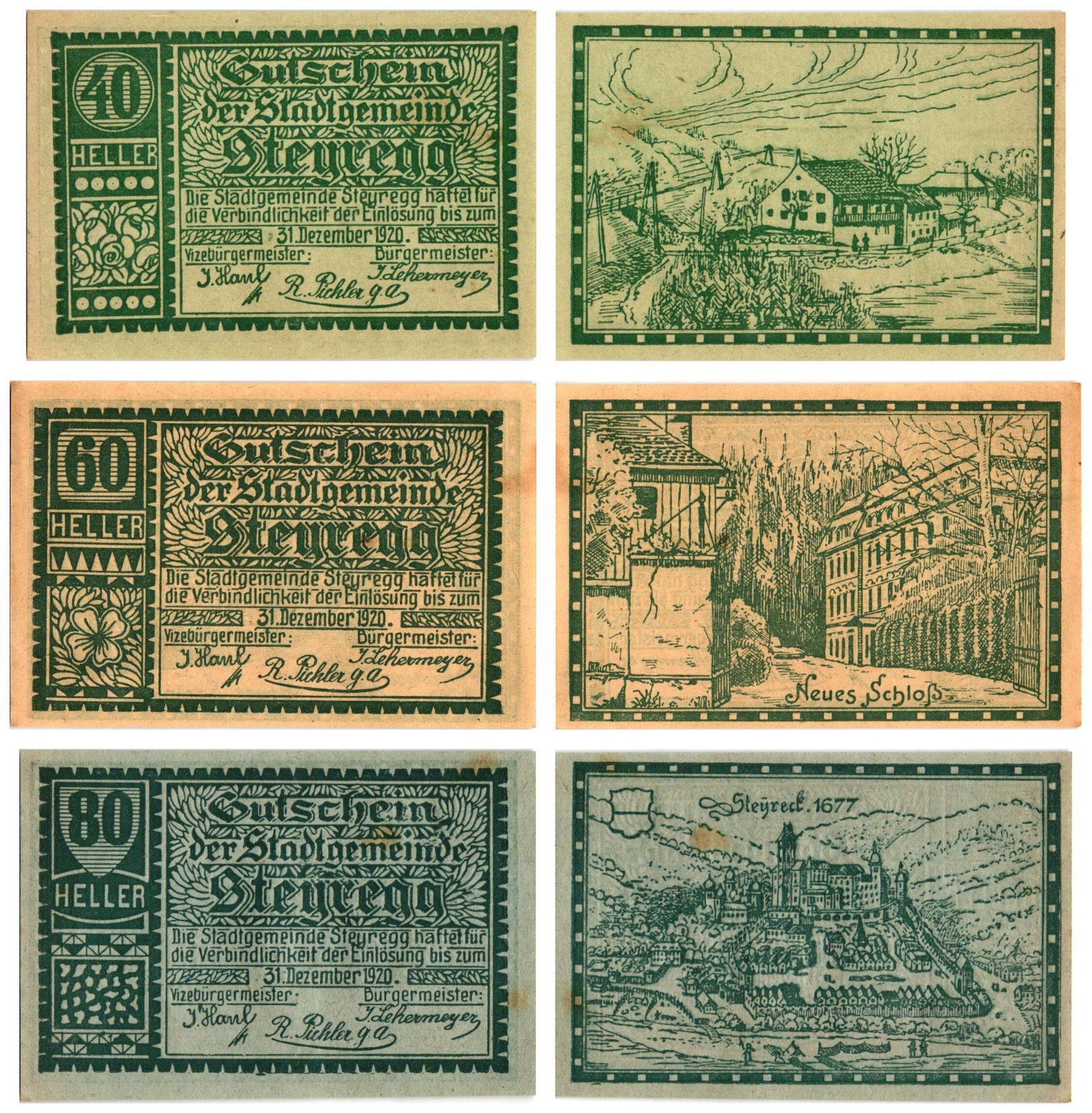 AUSTRIA Steyregg 1920 local banknotes lot / Notgeld / 3 pcs. UNC