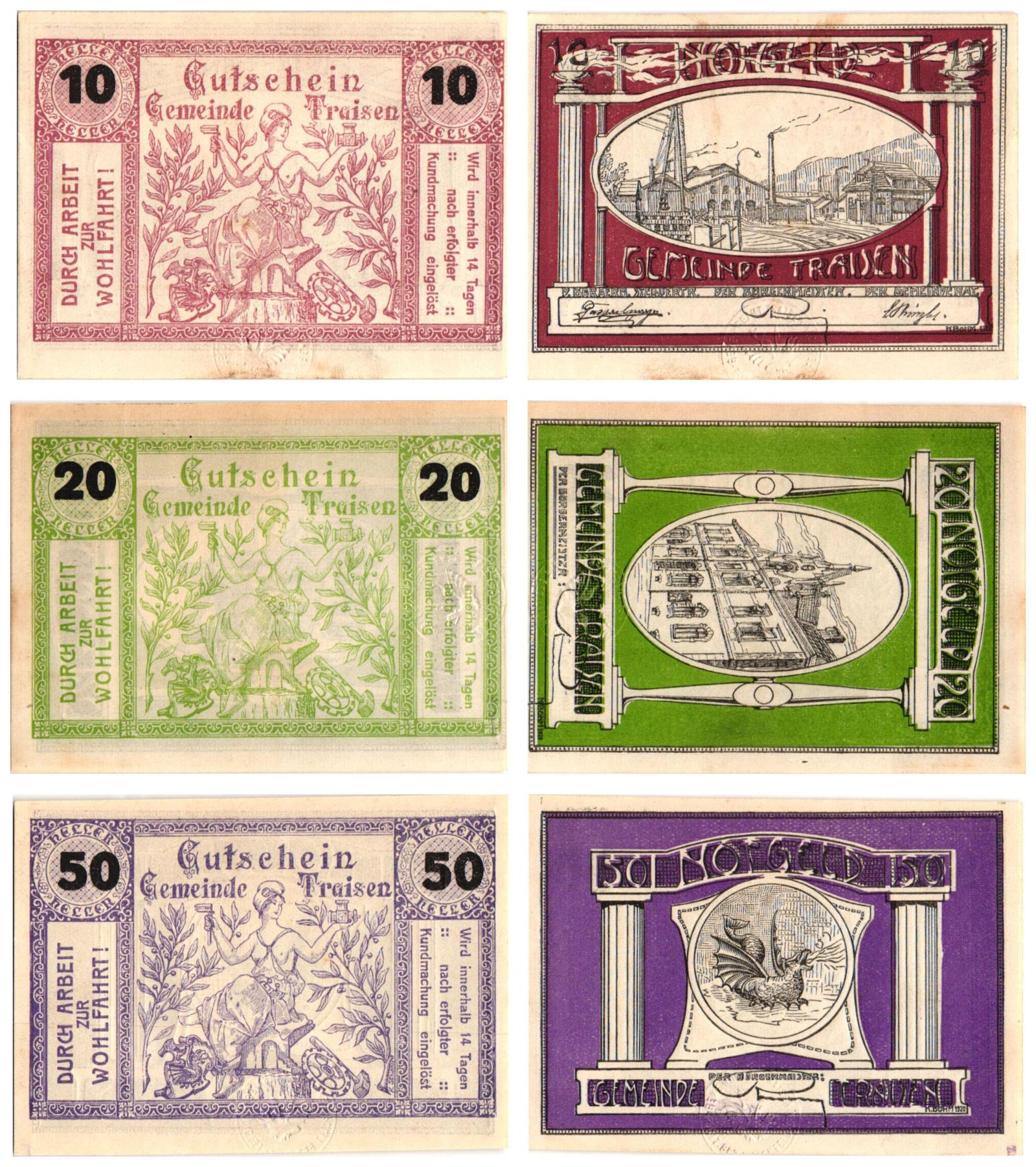 AUSTRIA Traisen 1920 local banknotes lot / Notgeld / 3 pcs. UNC