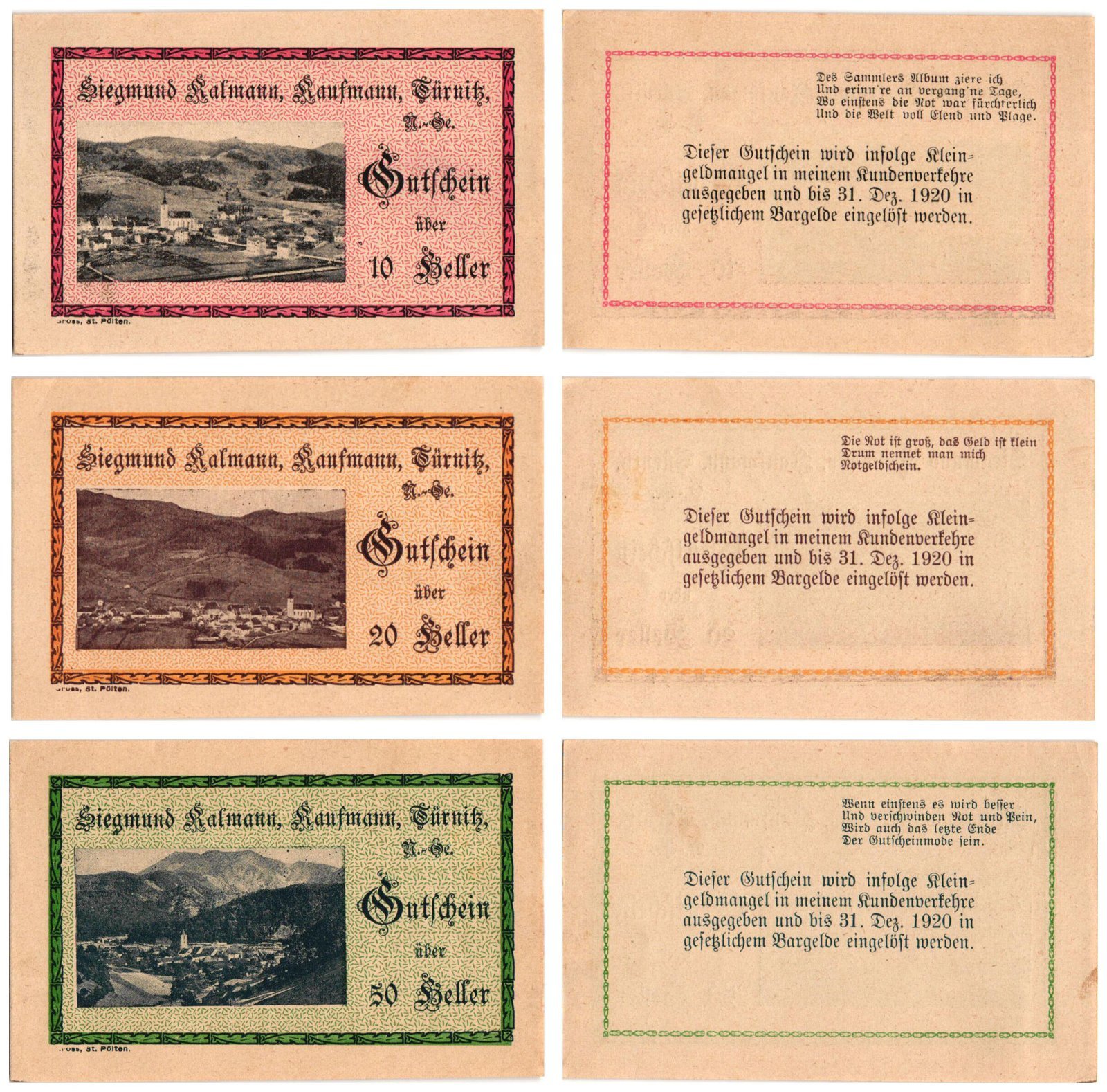 AUSTRIA Türnitz 1920 local banknotes lot / Notgeld / 3 pcs. UNC