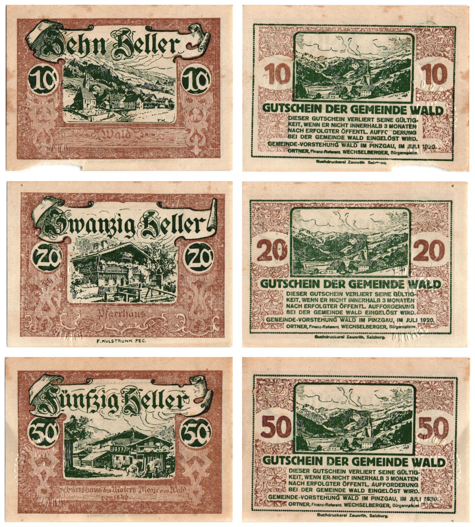 AUSTRIA Wald im Pinzgau 1920 local banknotes lot / Notgeld / 3 pcs. VG