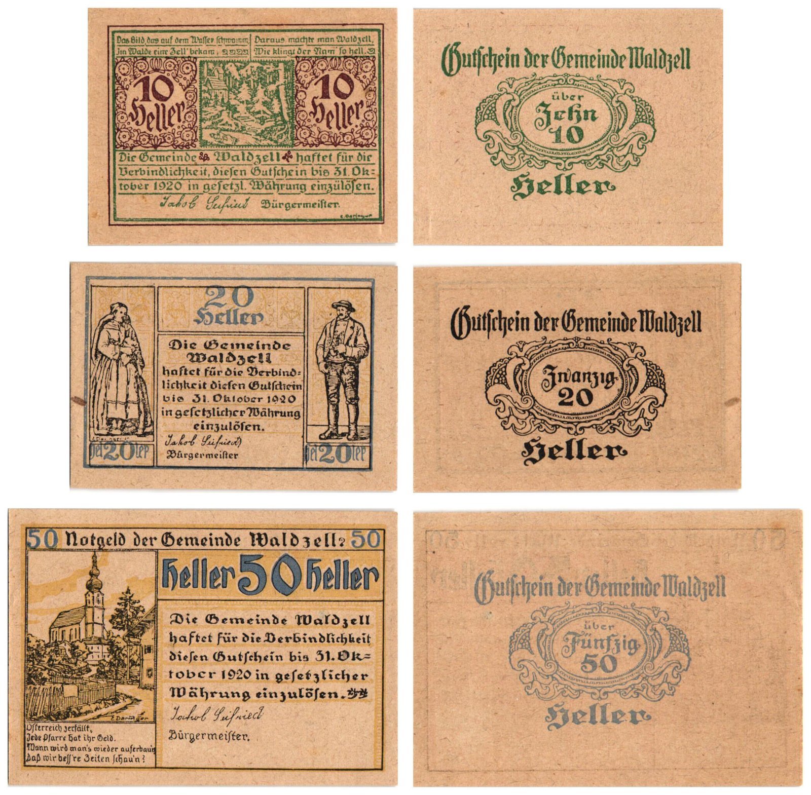 AUSTRIA Waldzell 1920 local banknotes lot / Notgeld / 3 pcs. UNC
