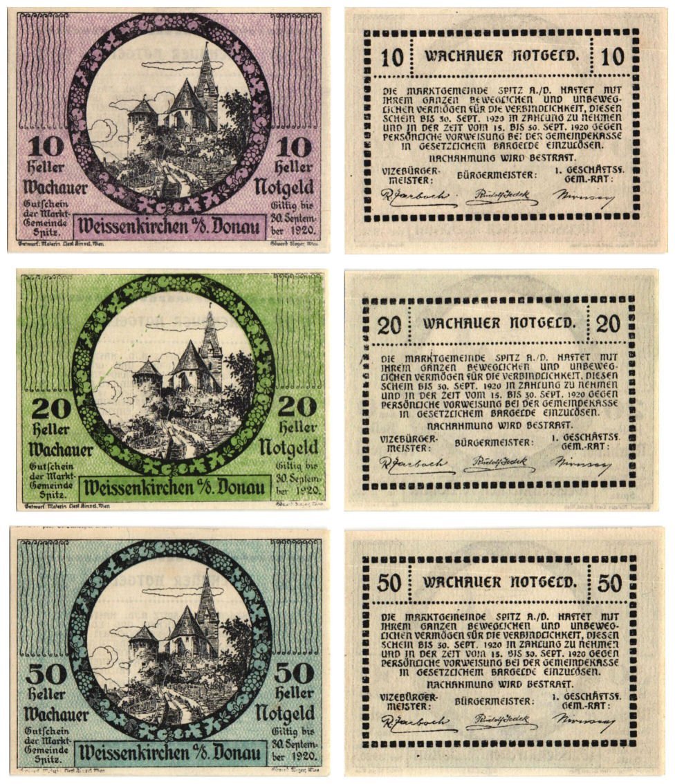 AUSTRIA Weissenkirchen 1920 local banknotes lot / Notgeld / 3 pcs. UNC