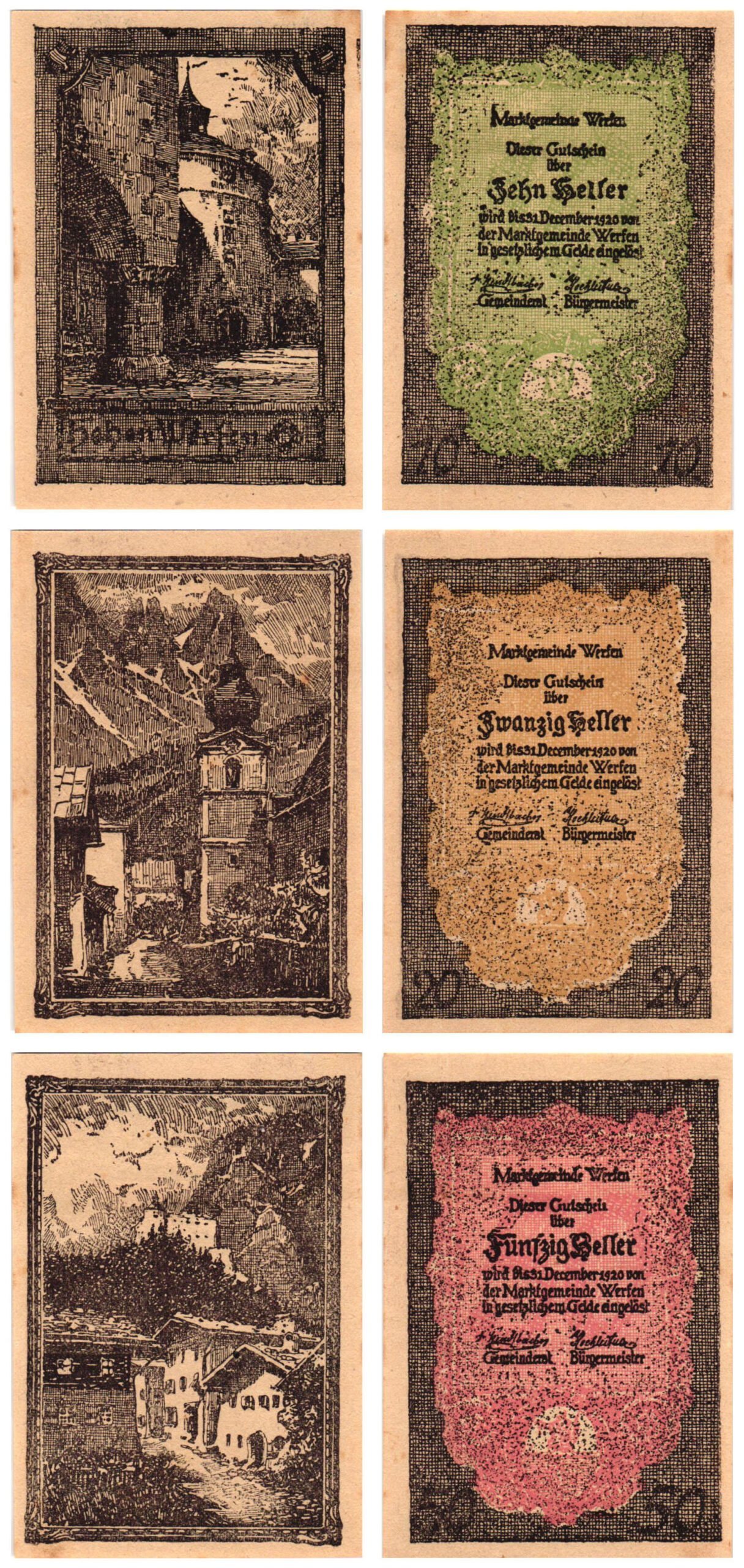 AUSTRIA Werfen 1920 local banknotes lot / Notgeld / 3 pcs. UNC