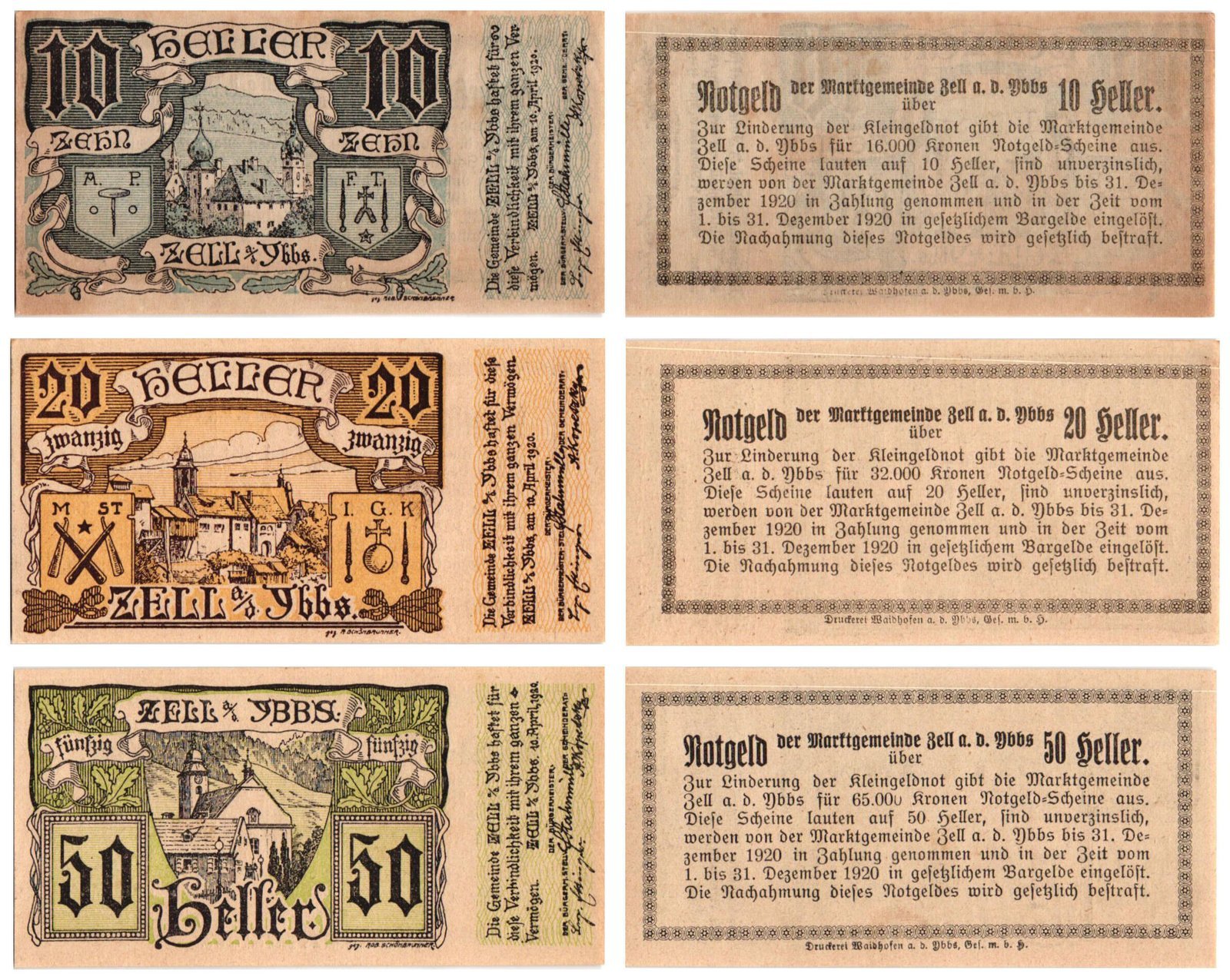 AUSTRIA Zell an der Ybbs 1920 local banknotes lot / Notgeld / 3 pcs. XF+