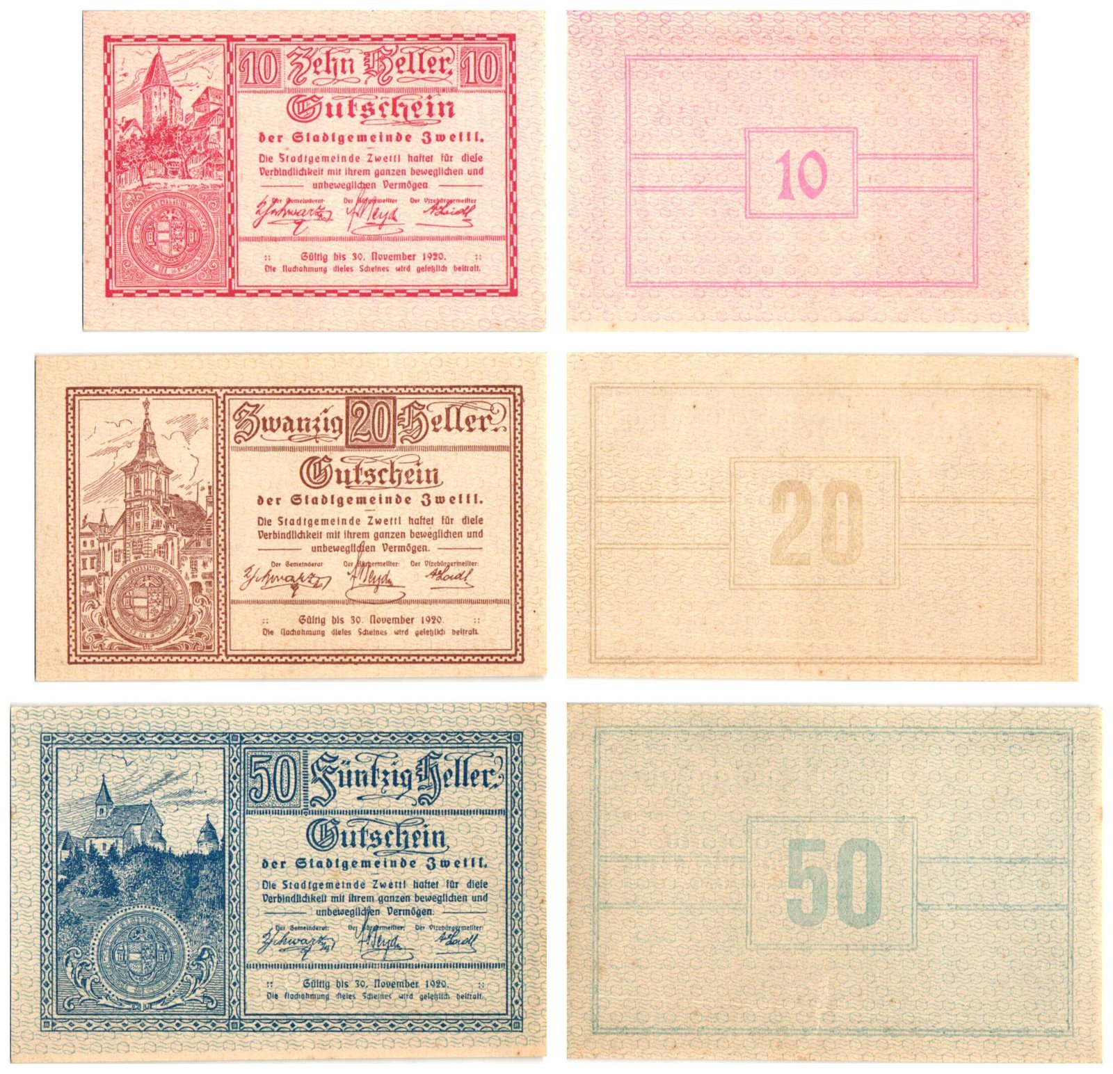 AUSTRIA Zwettl 1920 local banknotes lot / Notgeld / 3 pcs. VF+