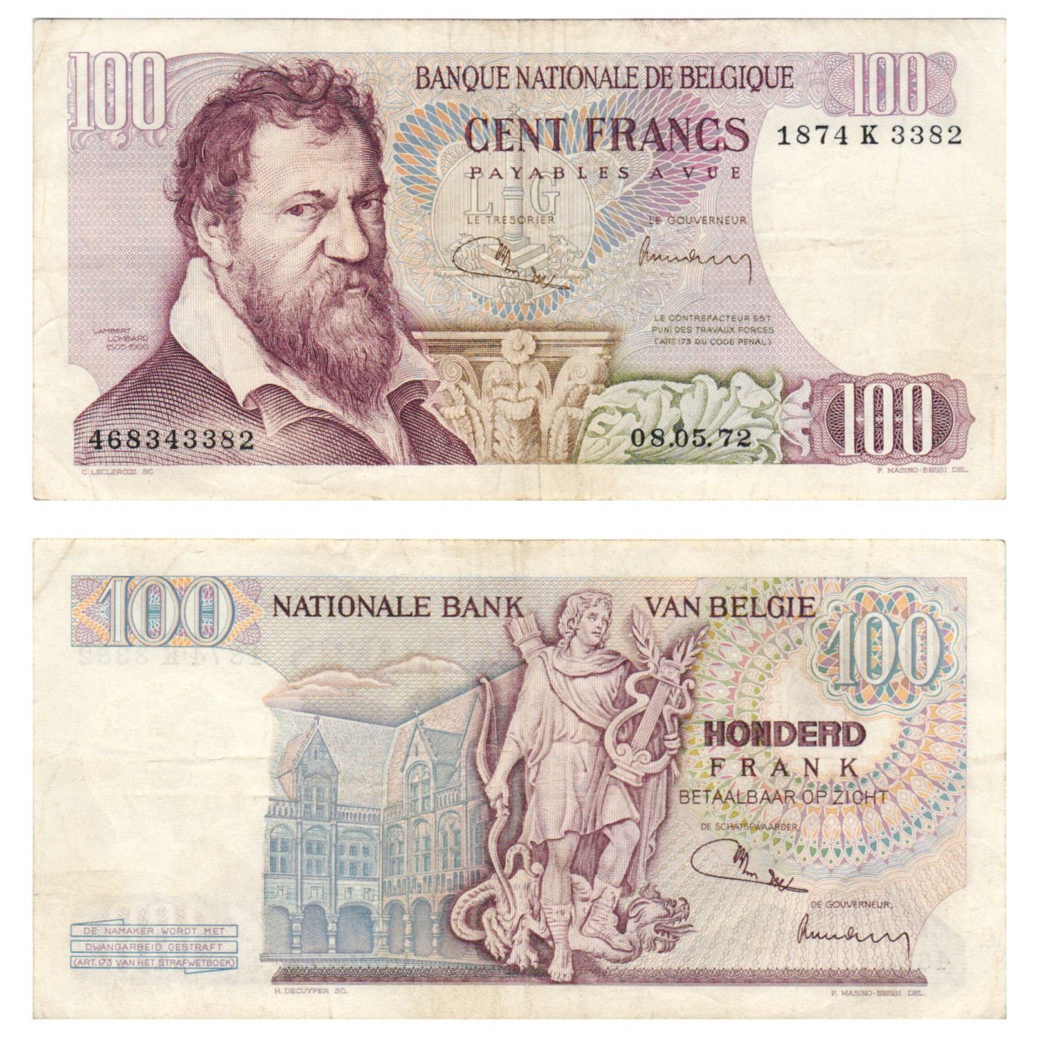 BELGIUM 100 francs 1972 VF