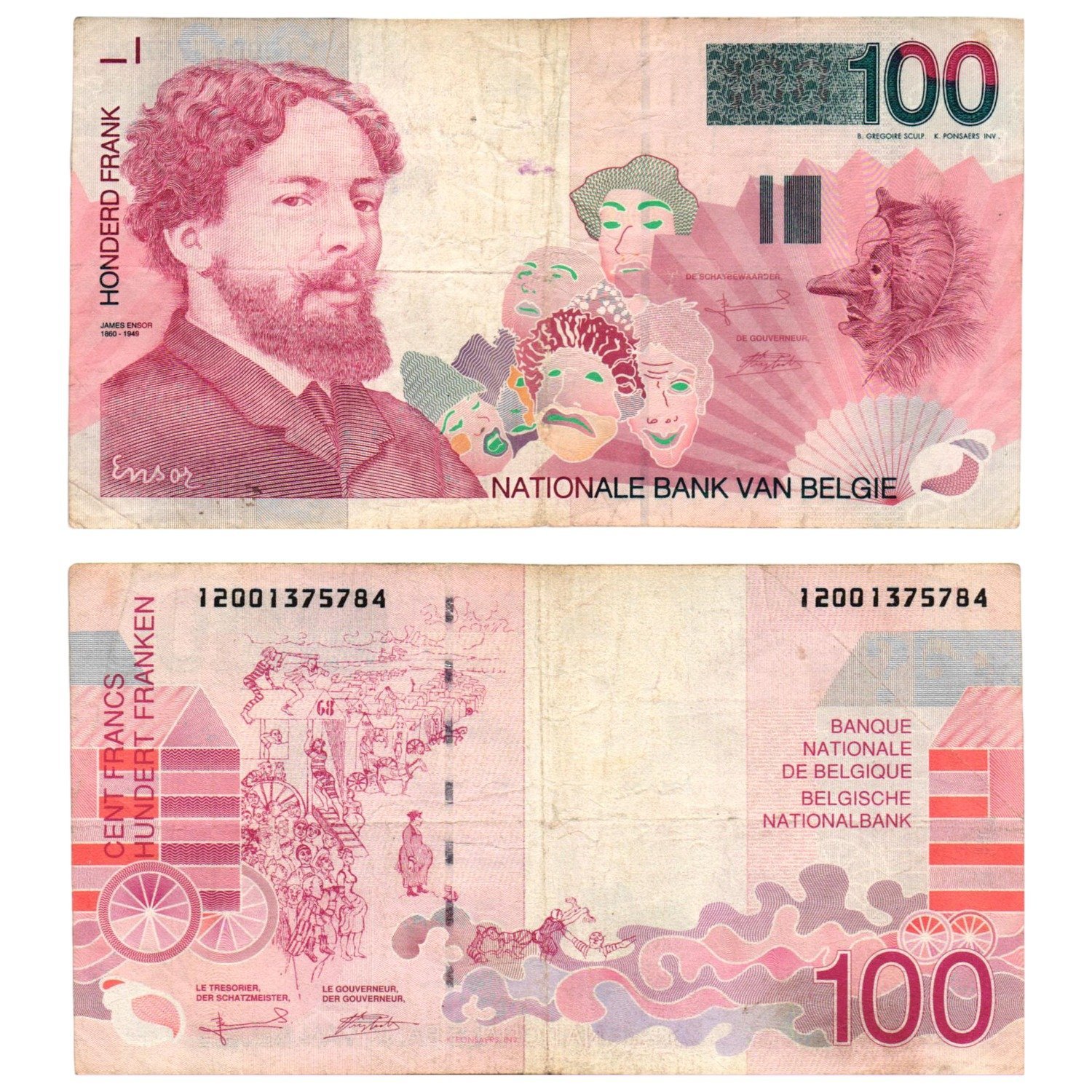 BELGIUM 100 francs ND(1995-2001) VF