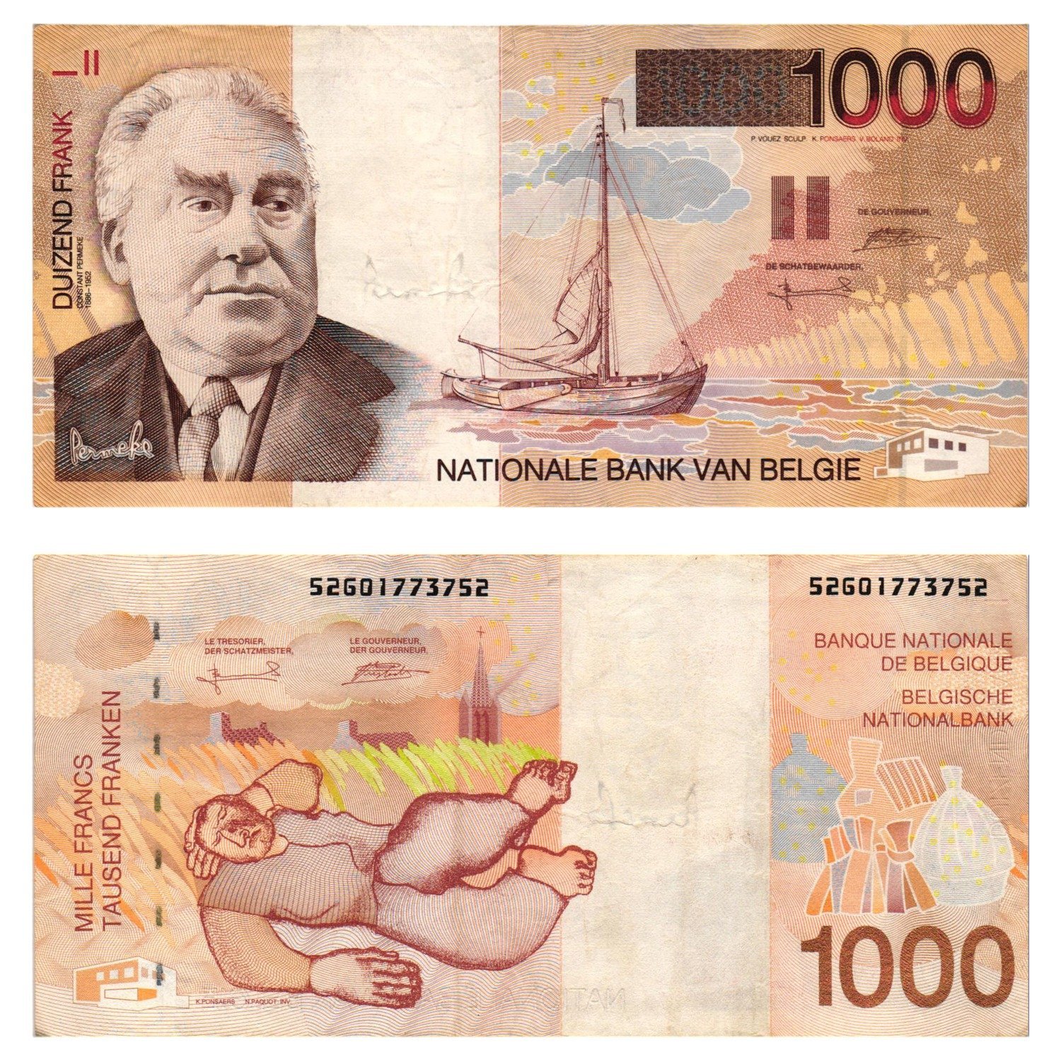 BELGIUM 1000 francs ND(1997) VF