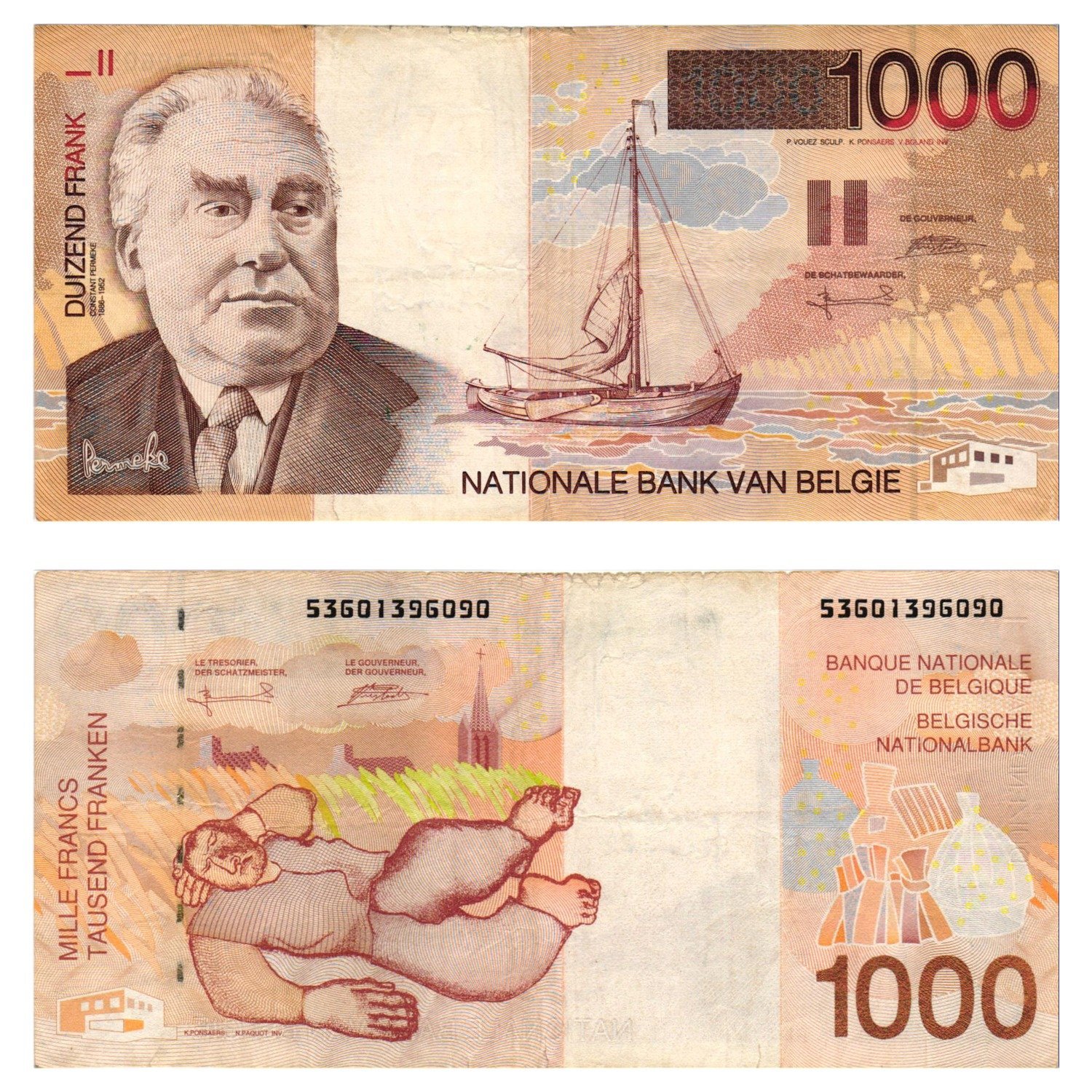 BELGIUM 1000 francs ND(1997) VF