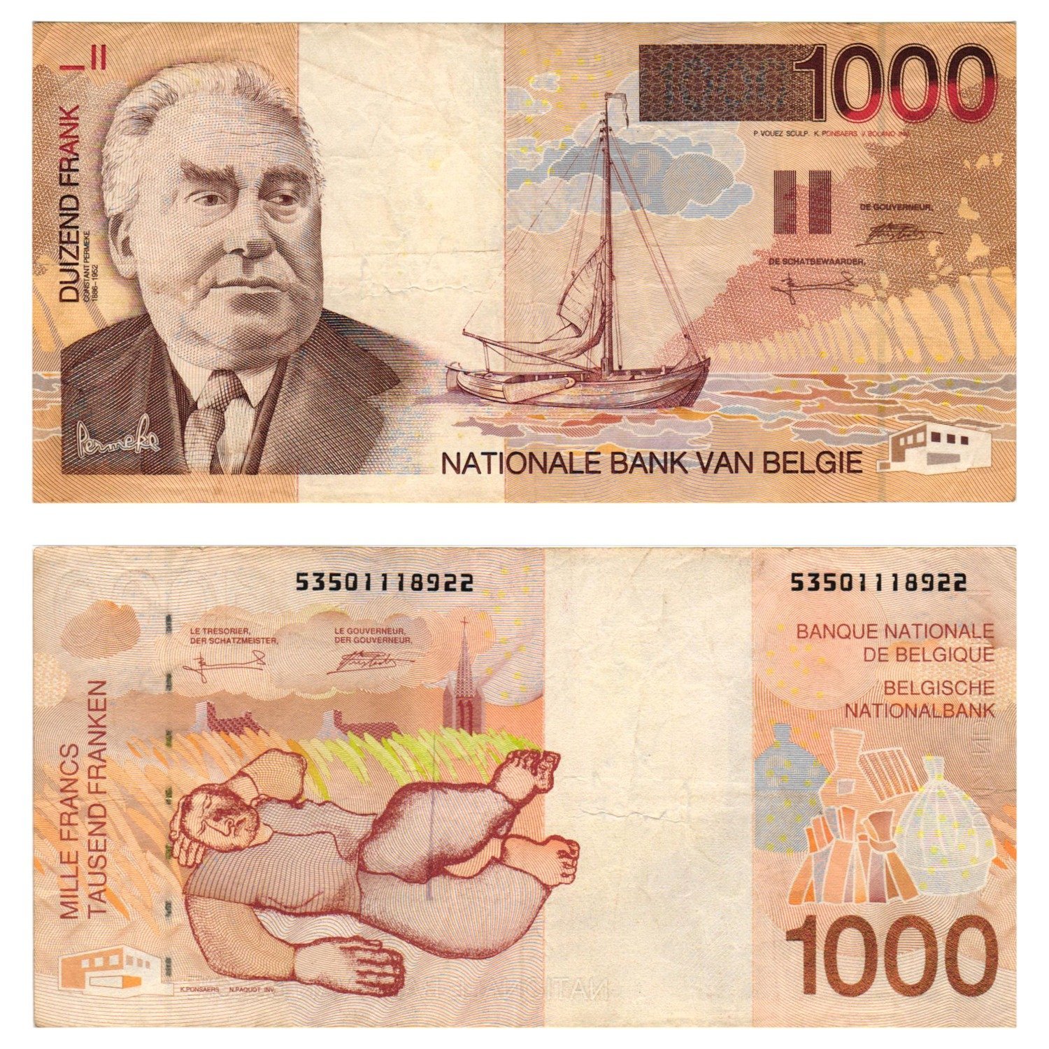 BELGIUM 1000 francs ND(1997) VF