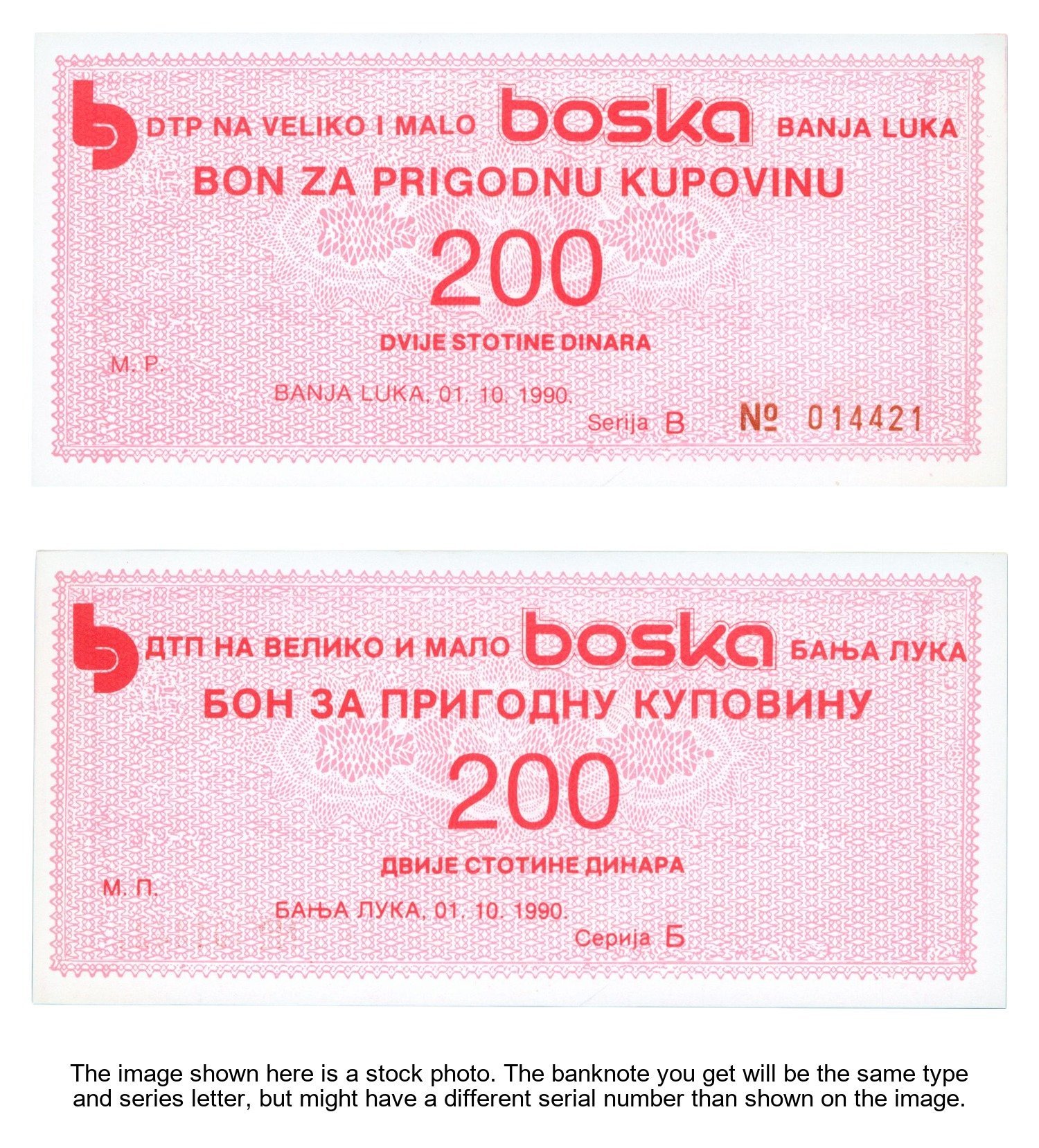 BOSNIA AND HERZEGOVINA 200 dinara 1990 / Banja Luka / Boska Company / Purchase voucher / UNC
