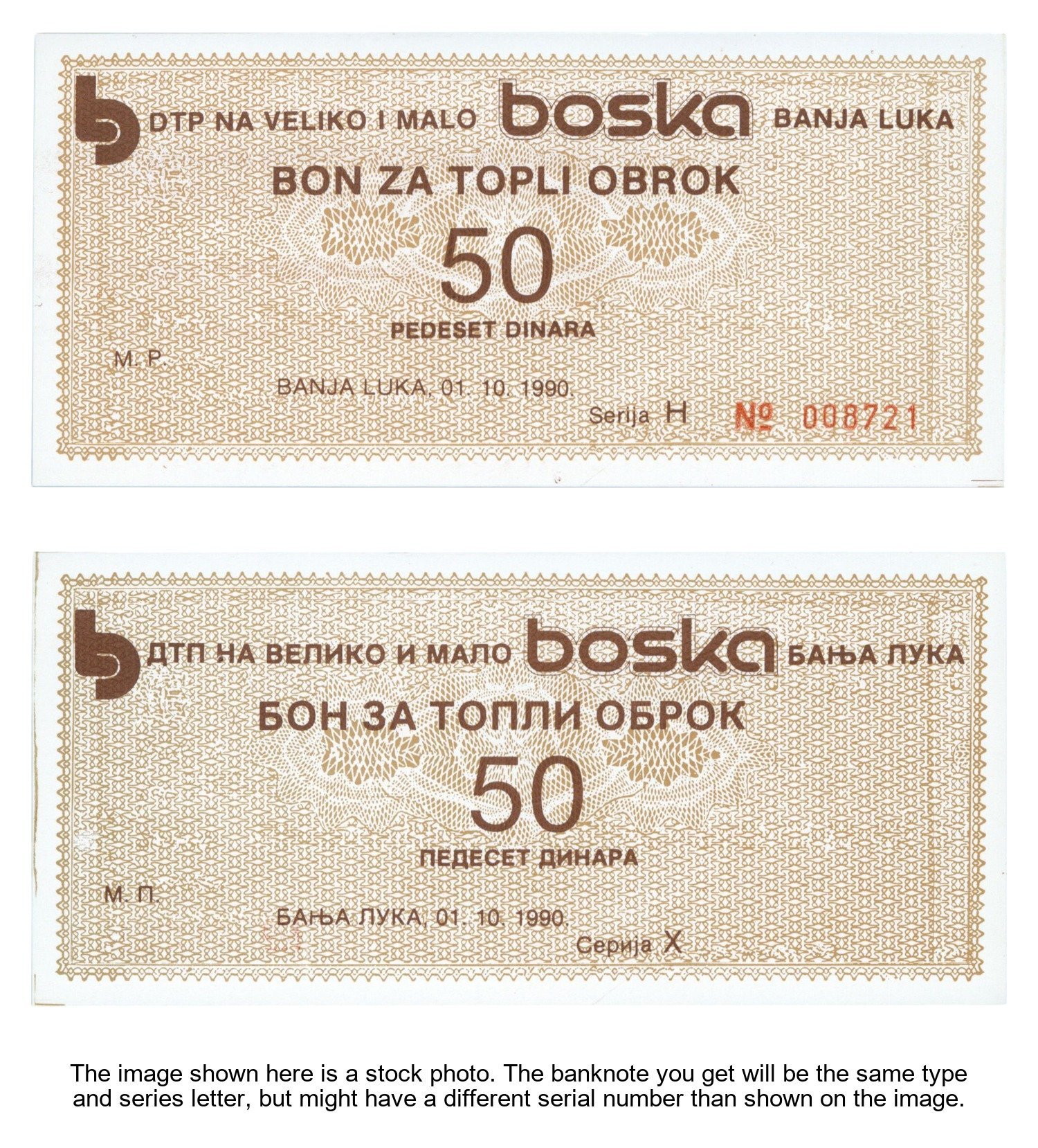 BOSNIA AND HERZEGOVINA 50 dinara 1990 / Banja Luka / Boska Company / Meal voucher / UNC