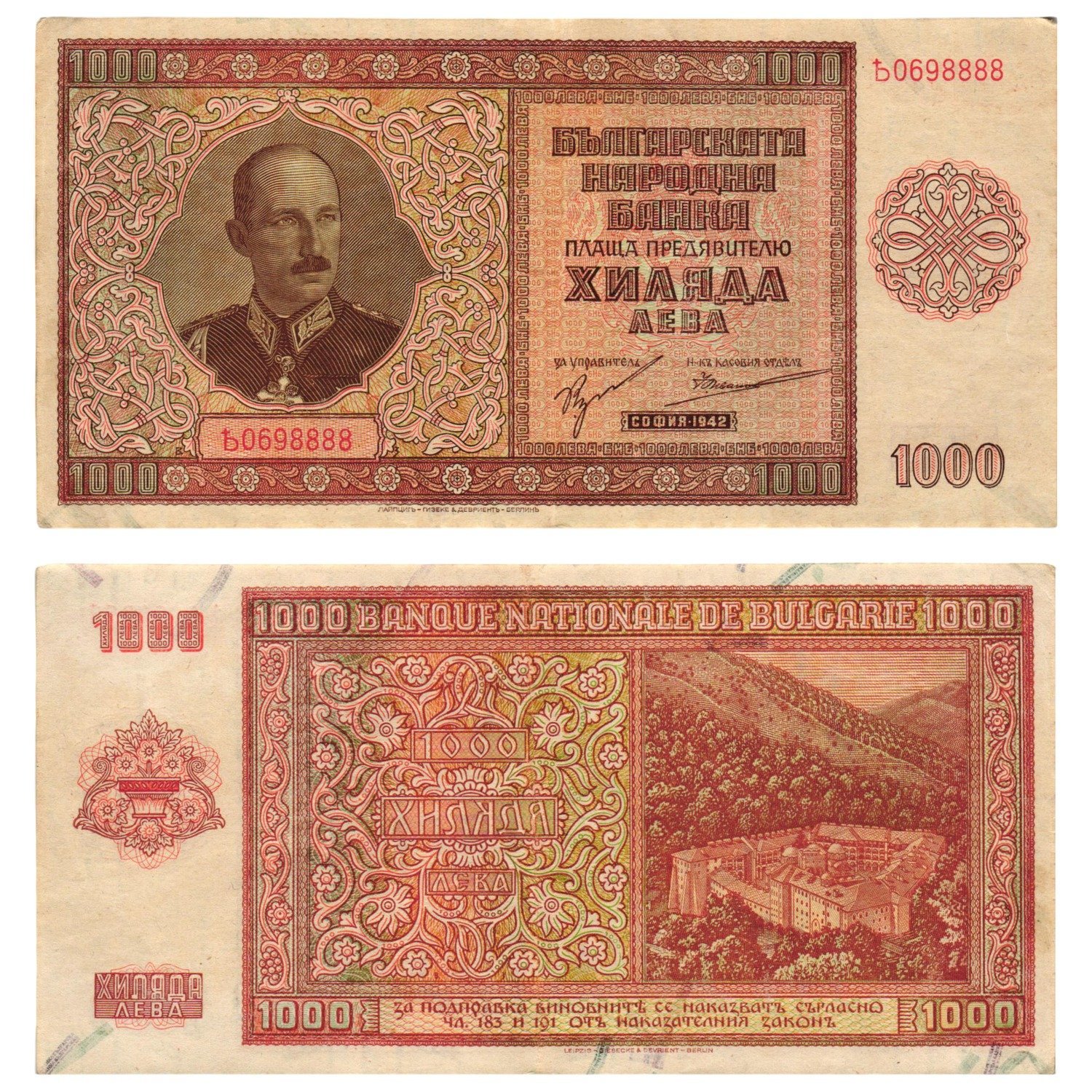 BULGARIA 1000 leva 1942 VF