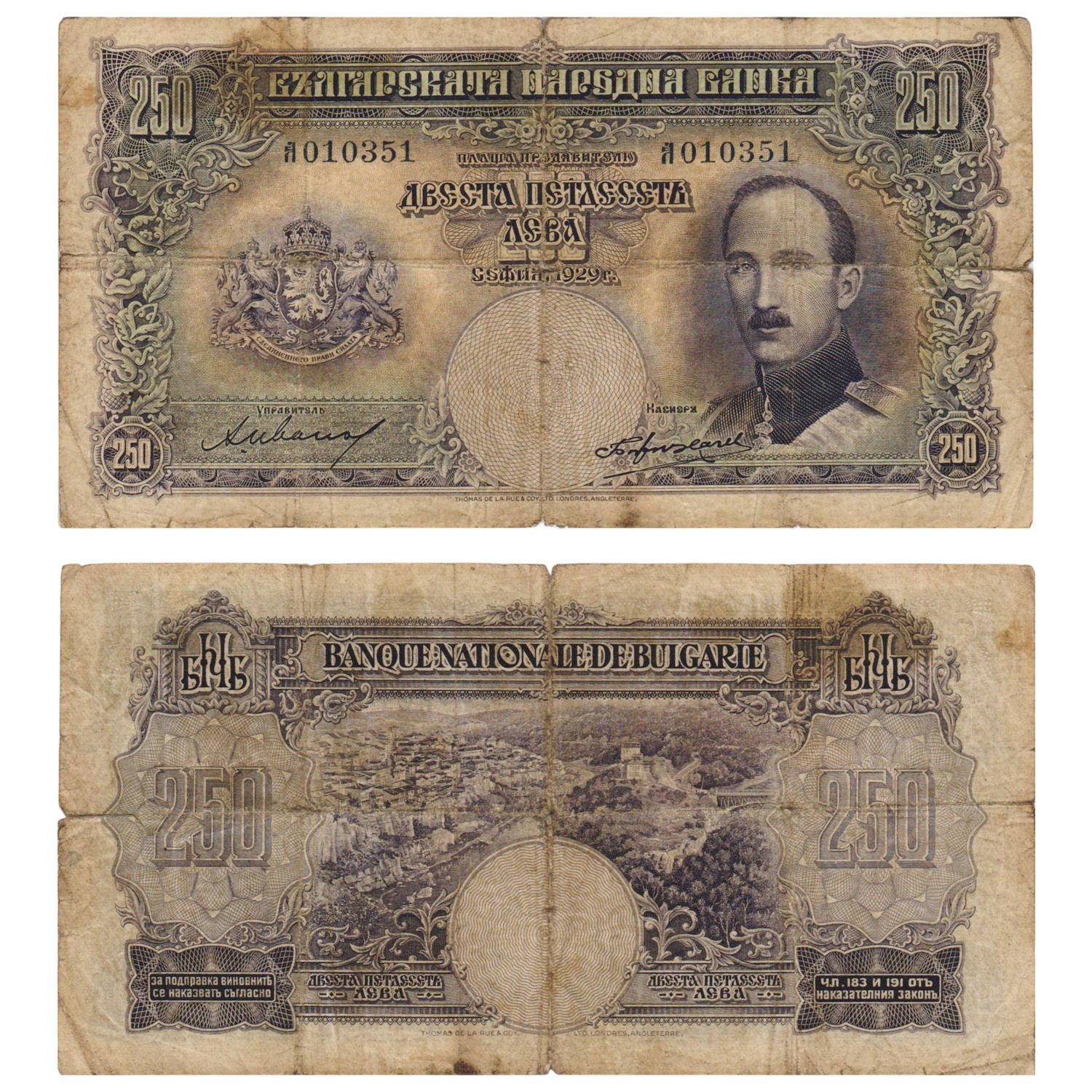 BULGARIA 250 leva 1929 / tear / F+
