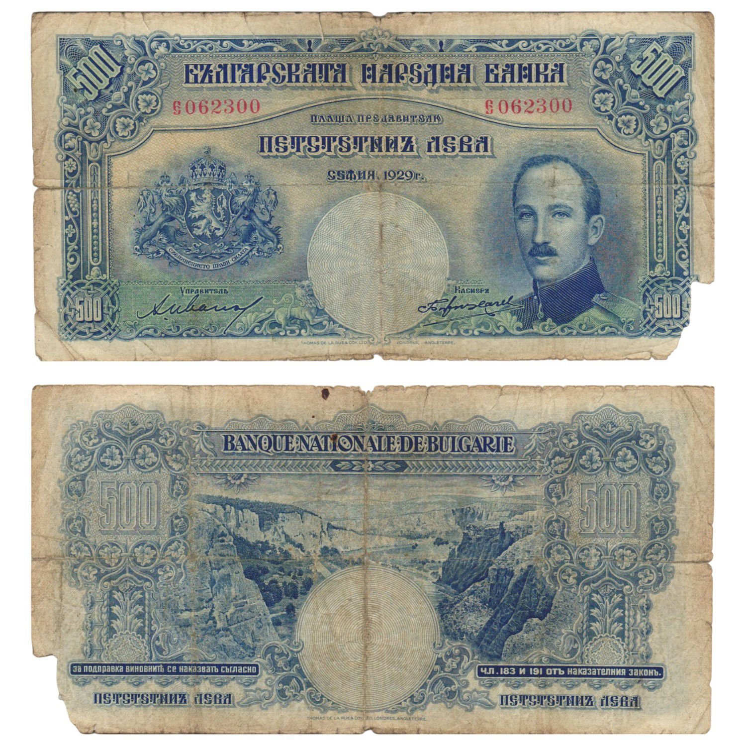 BULGARIA 500 leva 1929 / missing part / VG