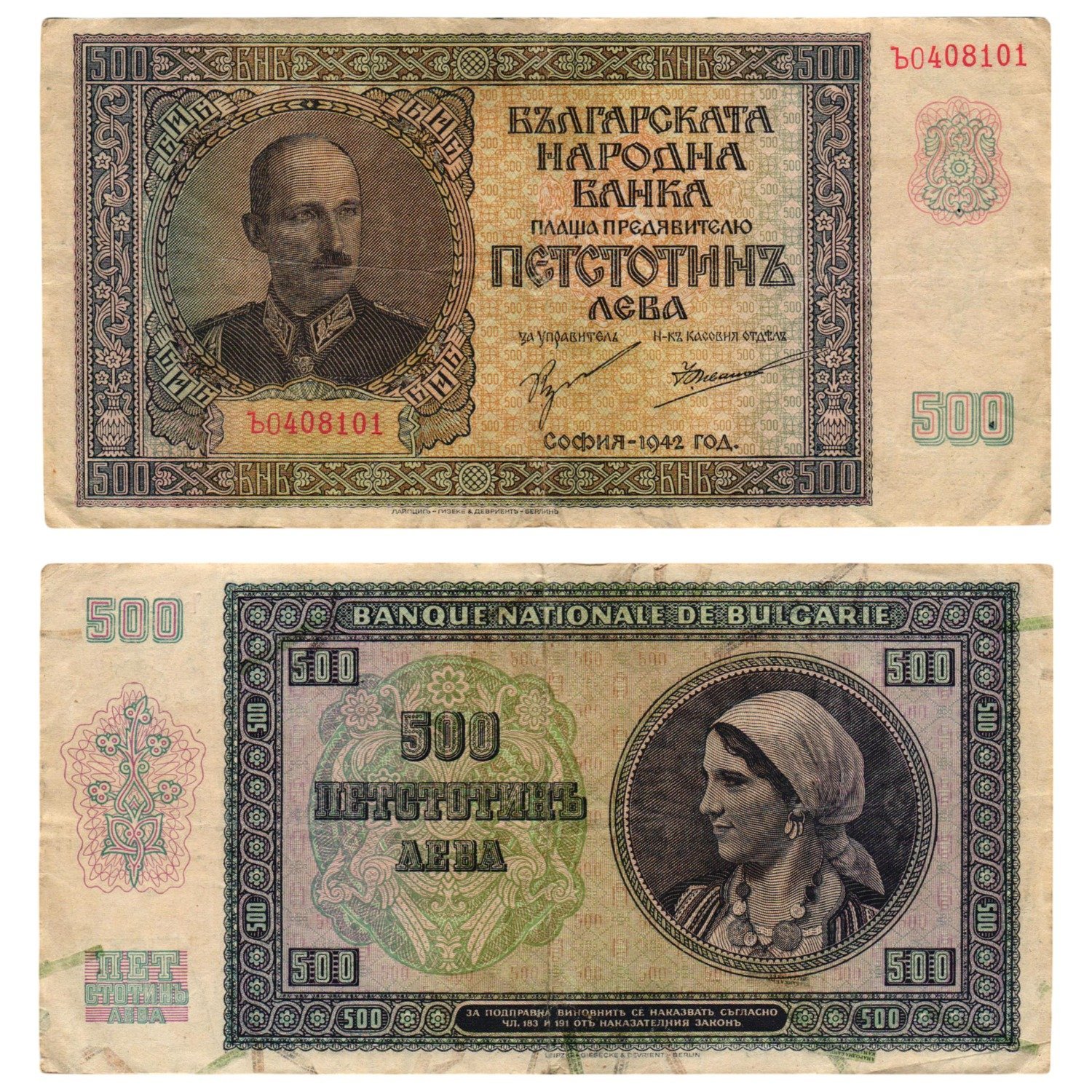 BULGARIA 500 leva 1942 VF