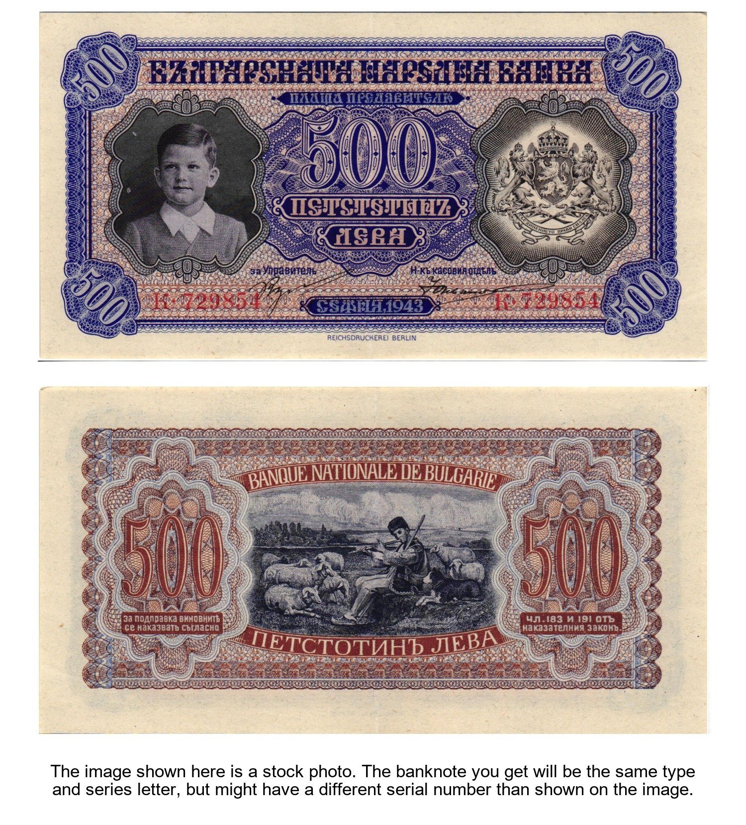 BULGARIA 500 leva 1943 / WWII issue / XF+