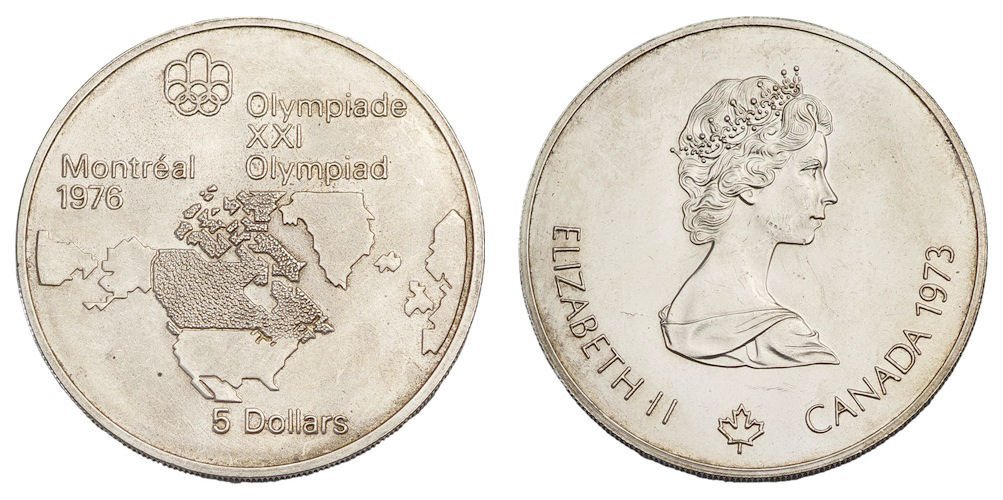 CANADA 5 dollars 1973 / 1976 Montreal Olympic Games / Silver / XF