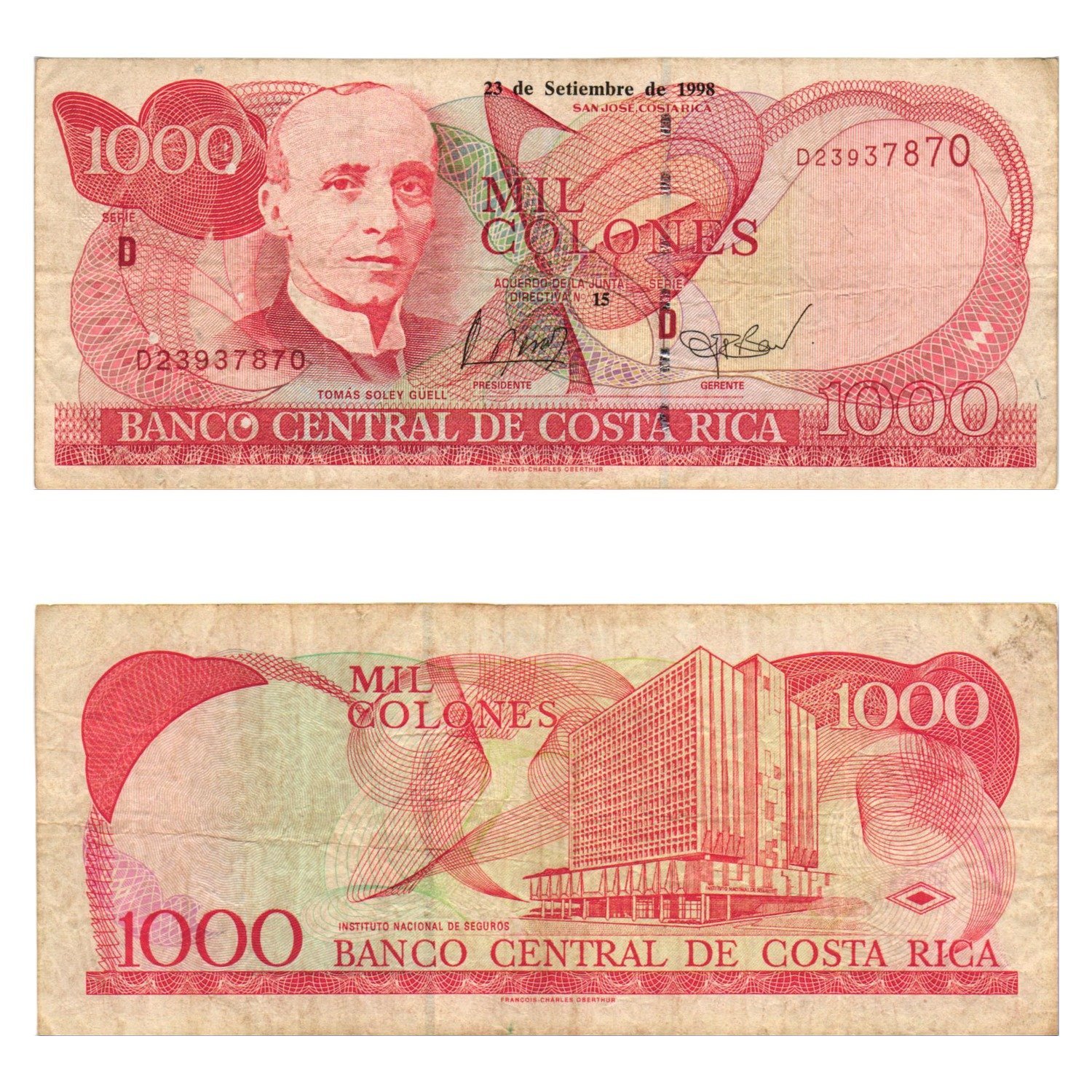 COSTA RICA 1000 colones 1998 VF-