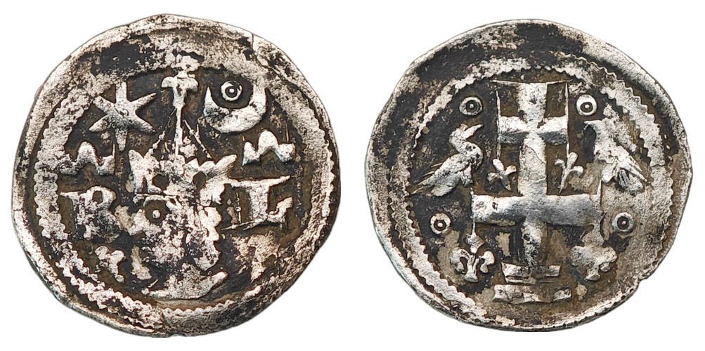 CROATIA 1/4 denar (bagatin) ND(1280-1282) / Slavonia / ban Stjepan Babonezić / B-L / circles above birds / Silver / VF-
