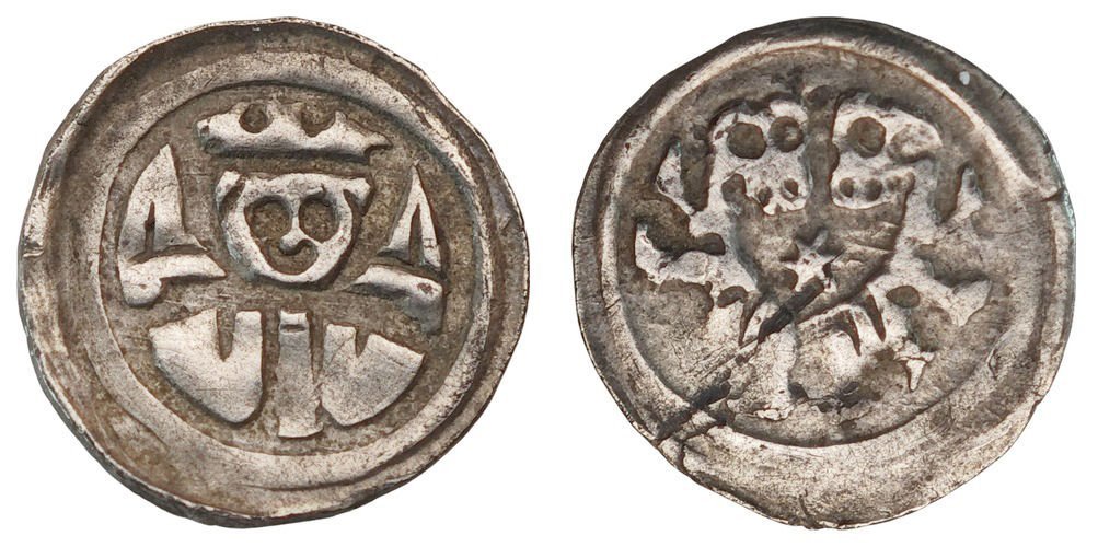 CROATIA 1 denar ND(1220-1235) / Friesach style / Mimica# 54 / herceg Bela and herceg Koloman / Silver / VF-
