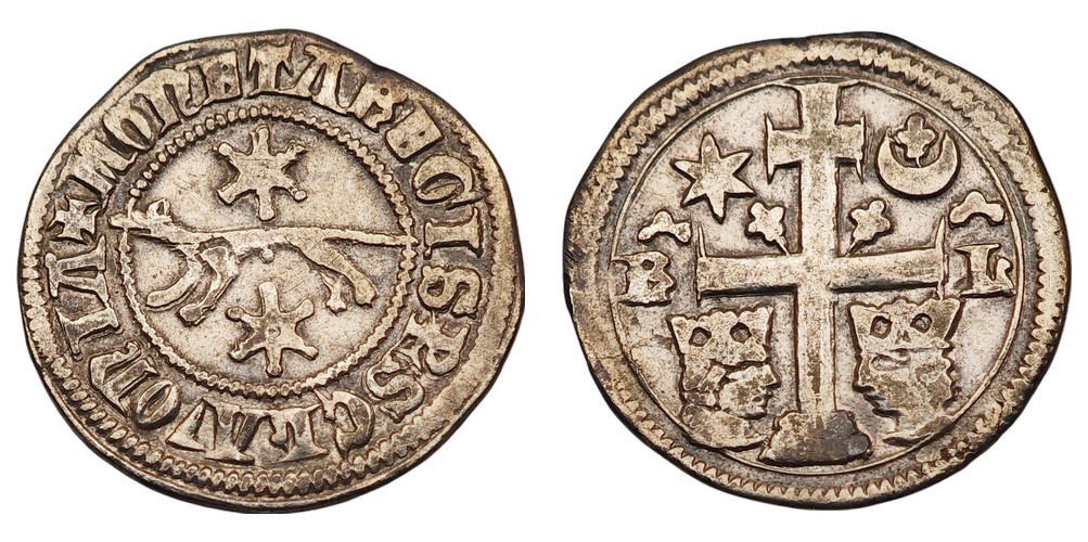 CROATIA 1 denar ND(1272-1290) / Slavonia / king Ladislav IV / R – L / cerscent with fleur-de-lis / Silver / VF