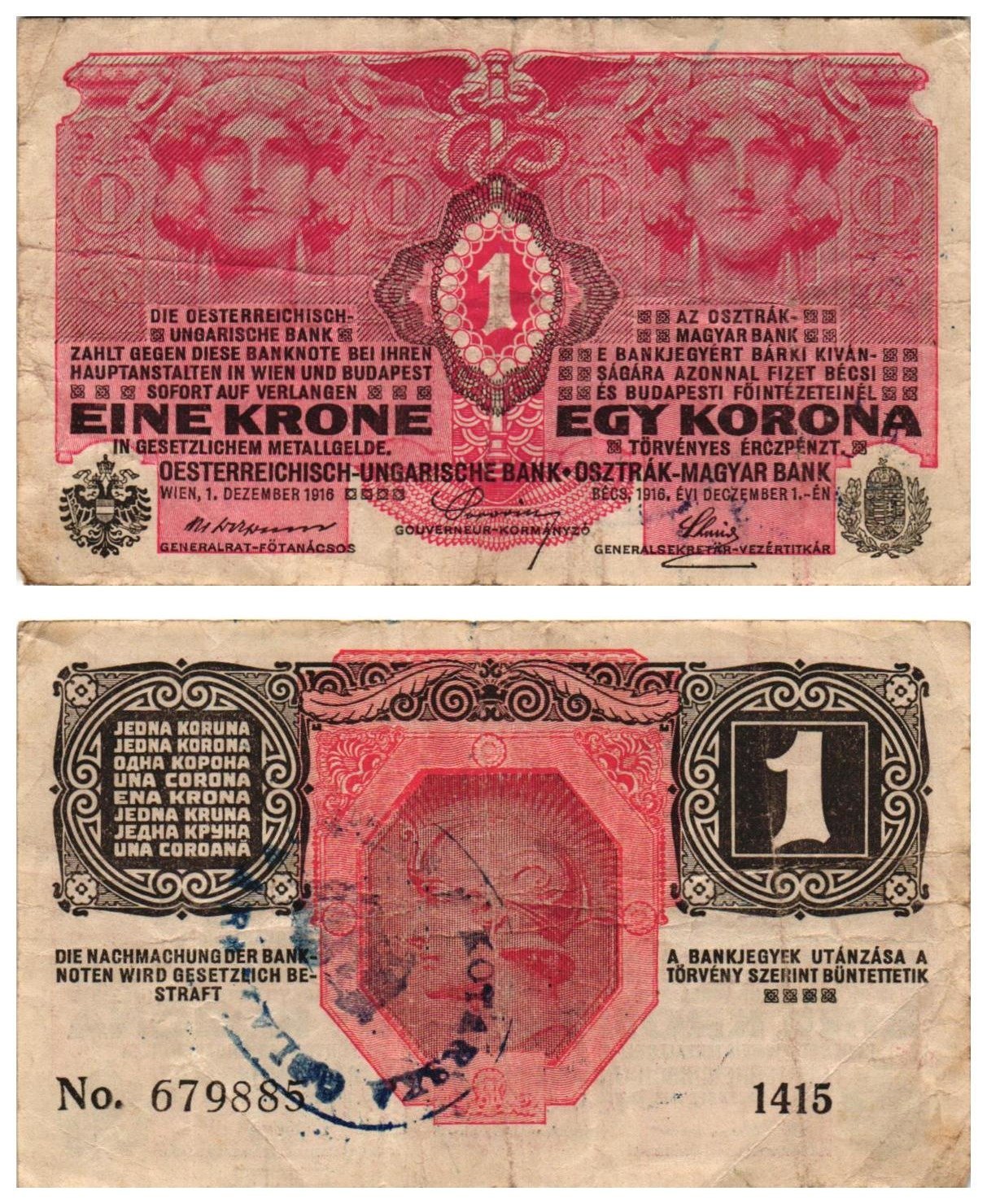 CROATIA 1 krone ND(1919) / unreadable seal / VF