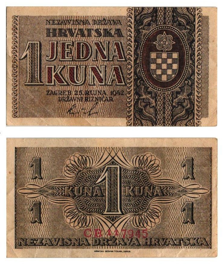 CROATIA 1 kuna 1942 / 2 letters / WWII Ustasa Germany Italy ally / VF