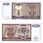 CROATIA 10 dinara 1992 / Knin Krajina occupation issue / Error: extra ink near the gullioche / UNC-