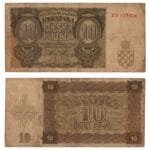CROATIA 10 kuna 1941 / 2 letters / WWII Ustasa Germany Italy ally / Orange color in lower right part on obverse / VF-