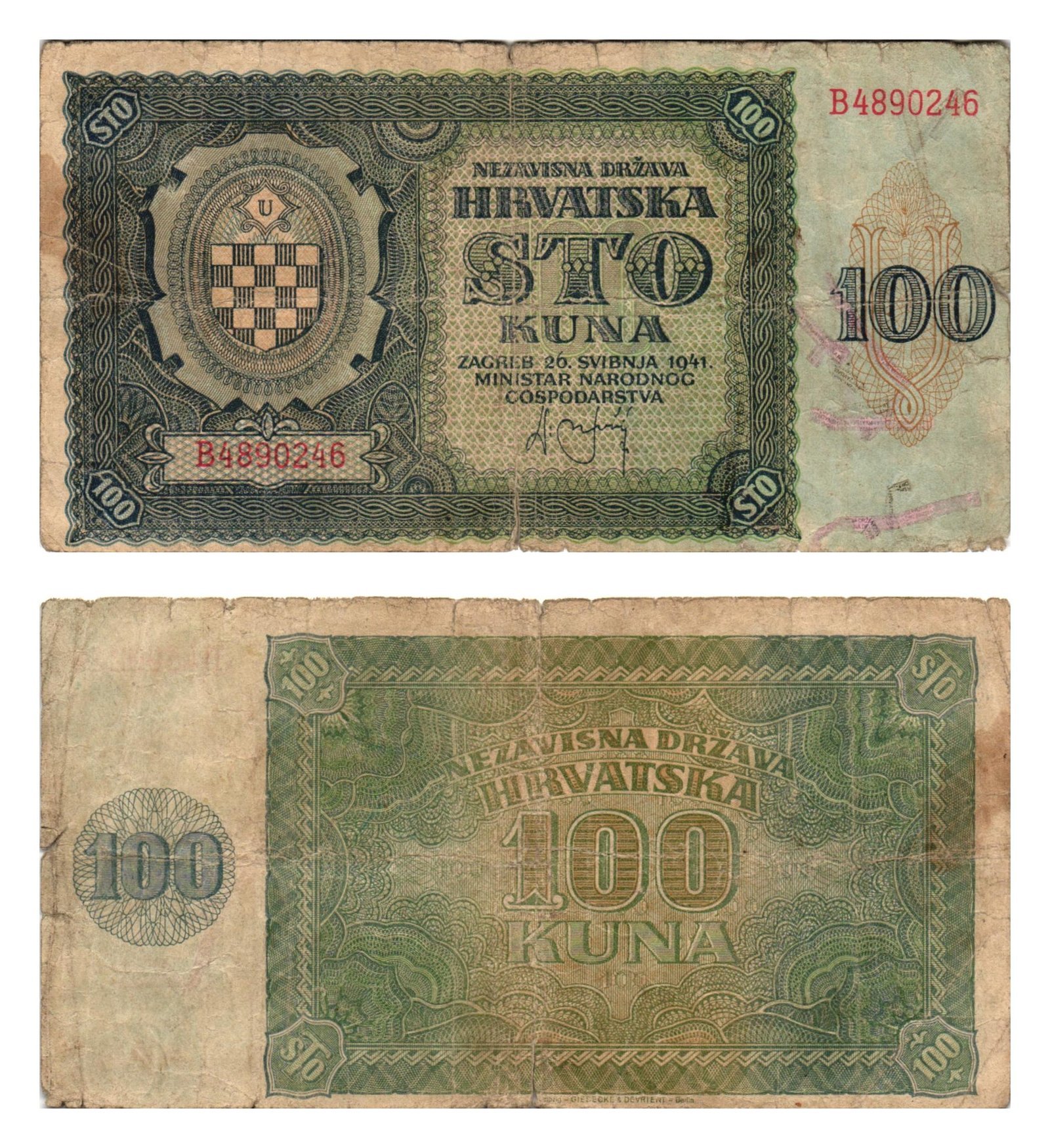 CROATIA 100 kuna 1941 / Ustasa WWII Germany Italy ally / minor tear / VF-