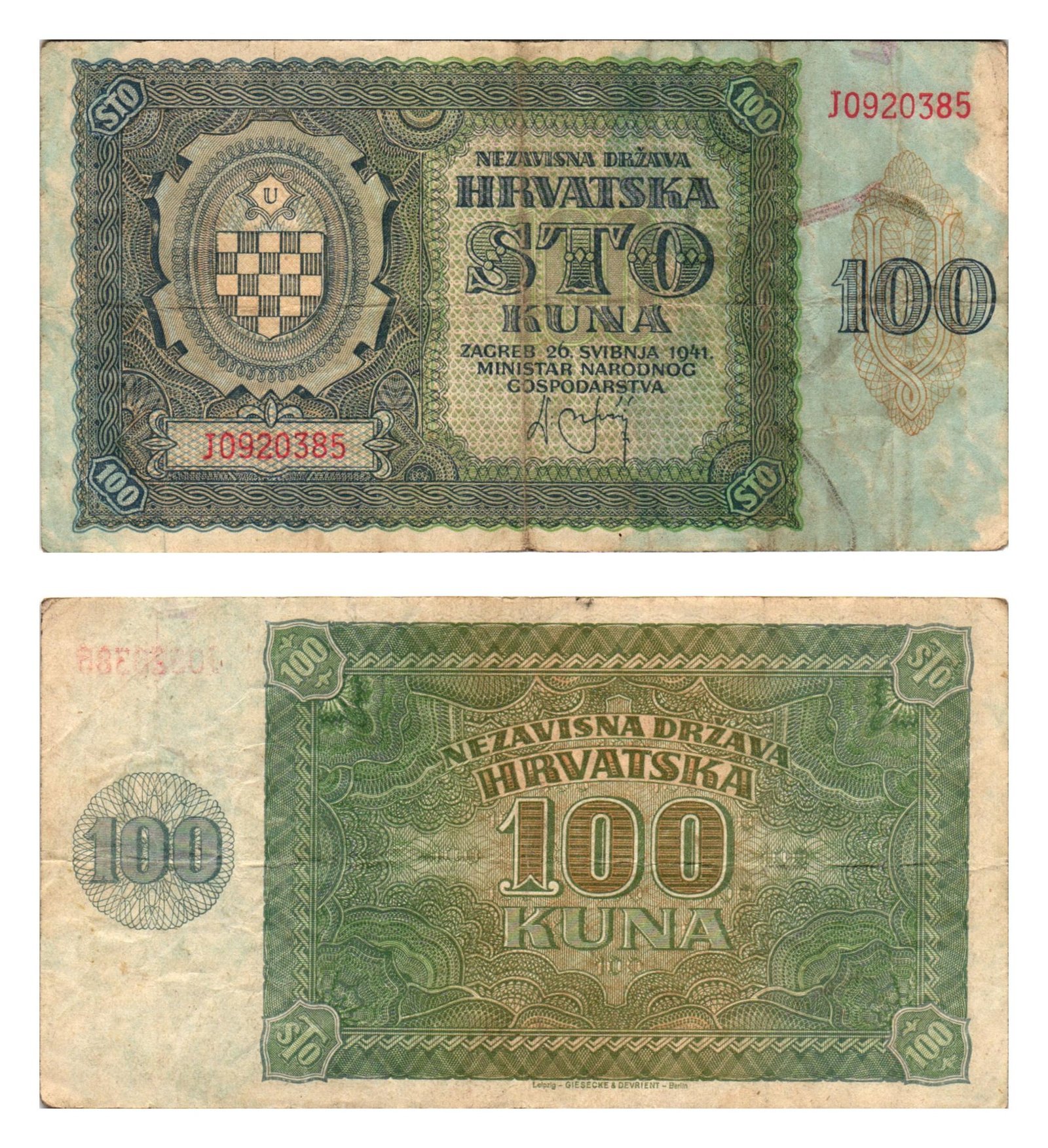 CROATIA 100 kuna 1941 / Ustasa WWII Germany Italy ally / VF-