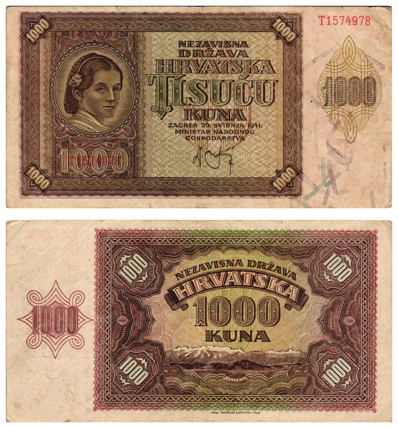 CROATIA 1000 kuna 1941 / Ustasa WWII Germany Italy ally / VF