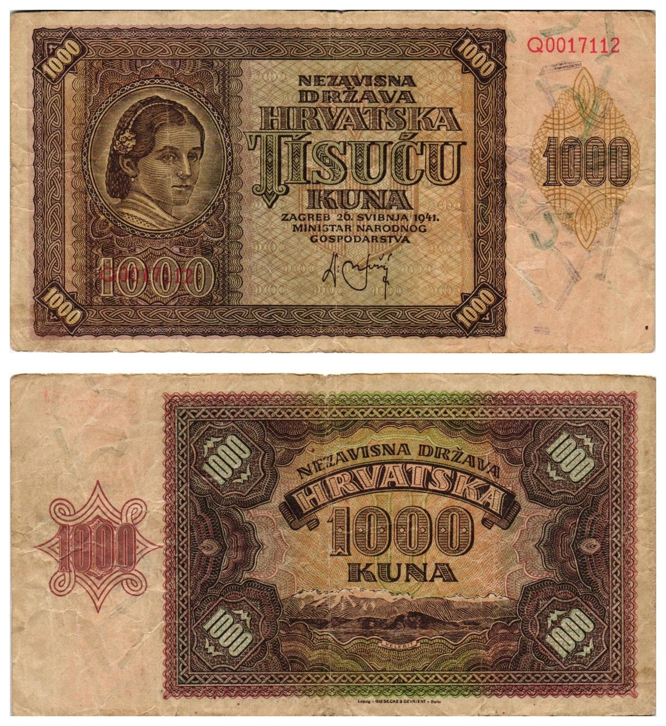 CROATIA 1000 kuna 1941 / Ustasa WWII Germany Italy ally / VF