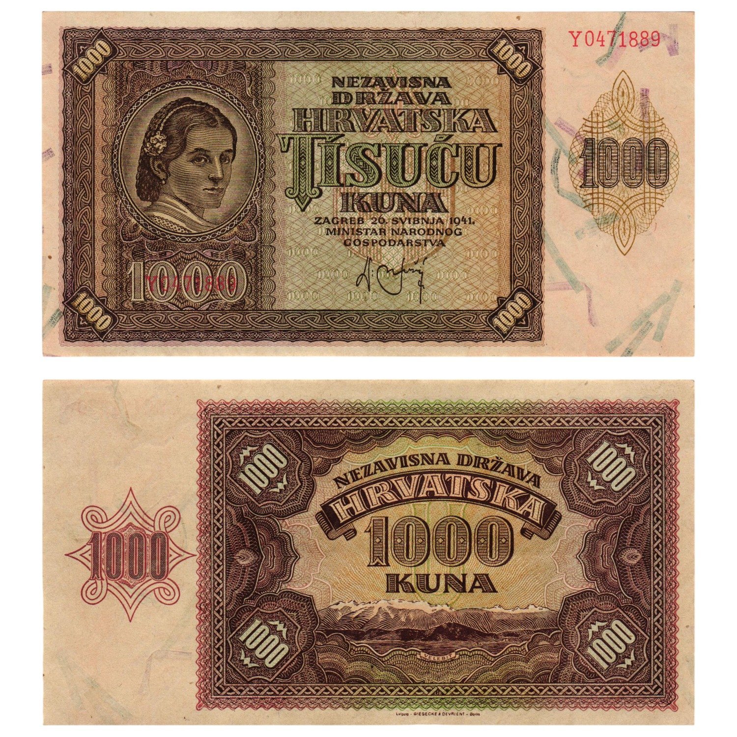 CROATIA 1000 kuna 1941 / WWII Ustasa Germany Italy ally / UNC-
