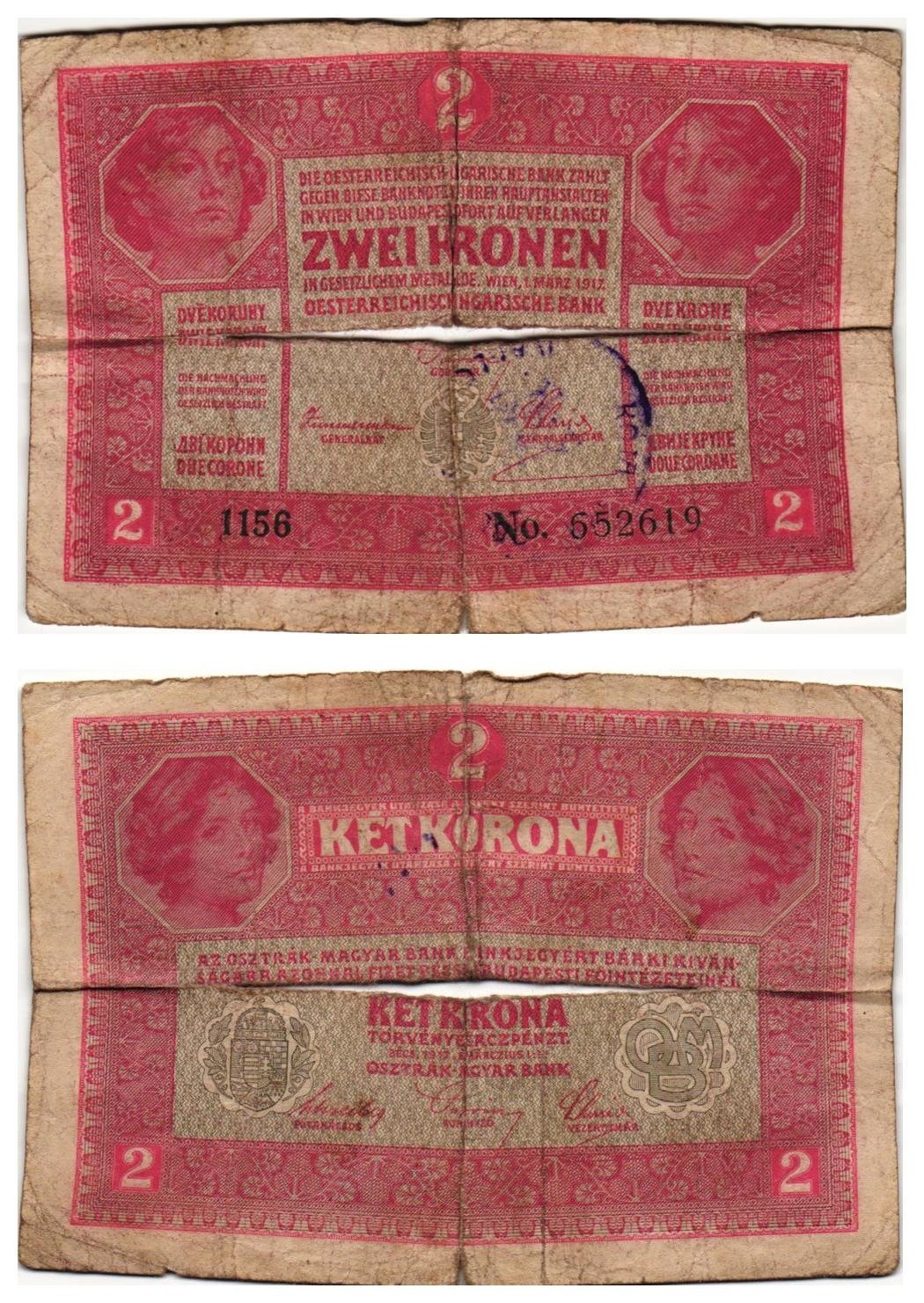 CROATIA 2 kronen ND(1919) / unreadable seal / tear / VG
