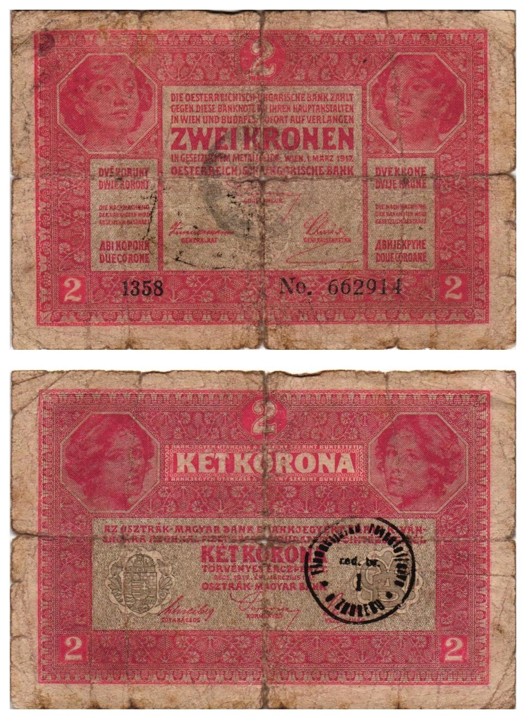 CROATIA 2 kronen ND(1919) / With seal Zagreb / VG