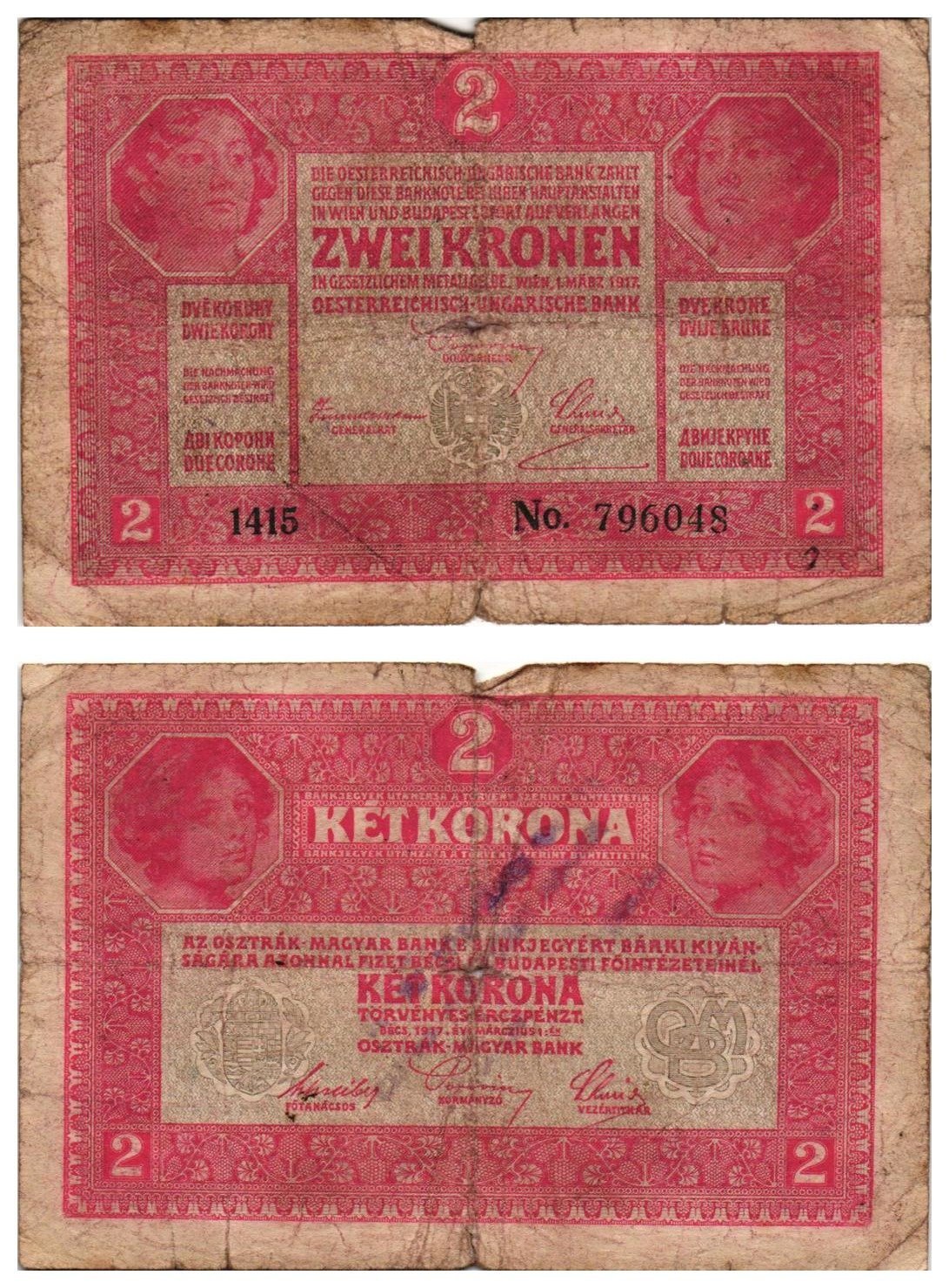 CROATIA 2 kronen ND(1919) / With unreadable seal / F+