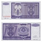 CROATIA 5 billipn dinara 1993 / Knin Krajina occupation issue / Replacement series Z / Low serial # / paper cut / VG
