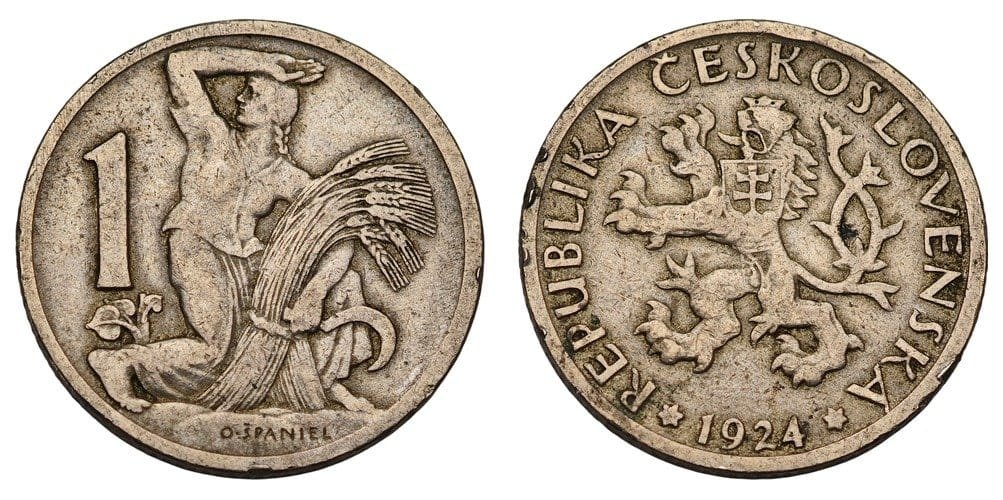 CZECHOSLOVAKIA 1 koruna 1924 VF
