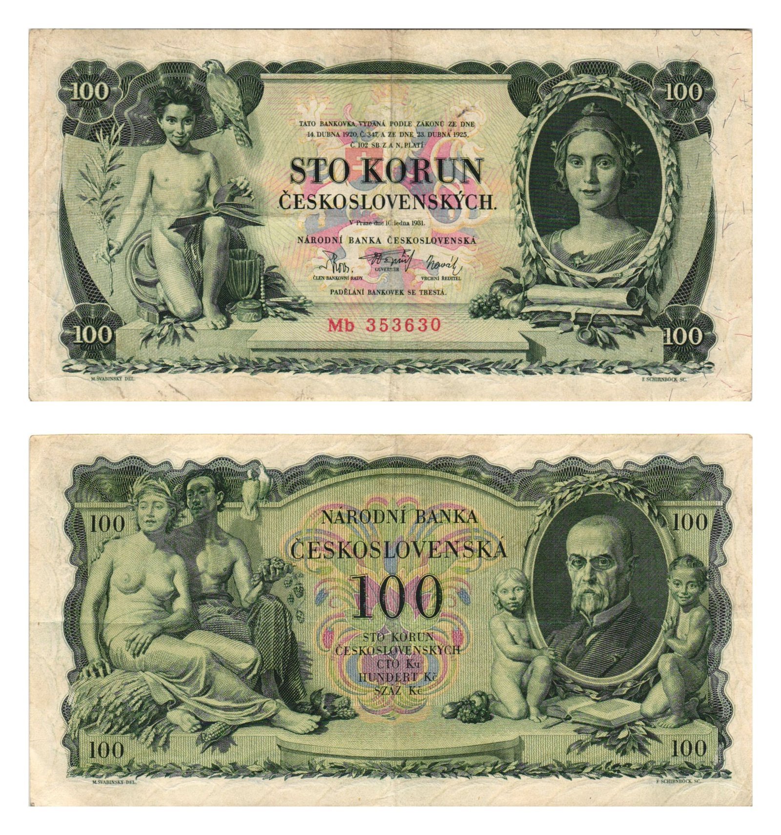 CZECHOSLOVAKIA 100 korun 1931 VF