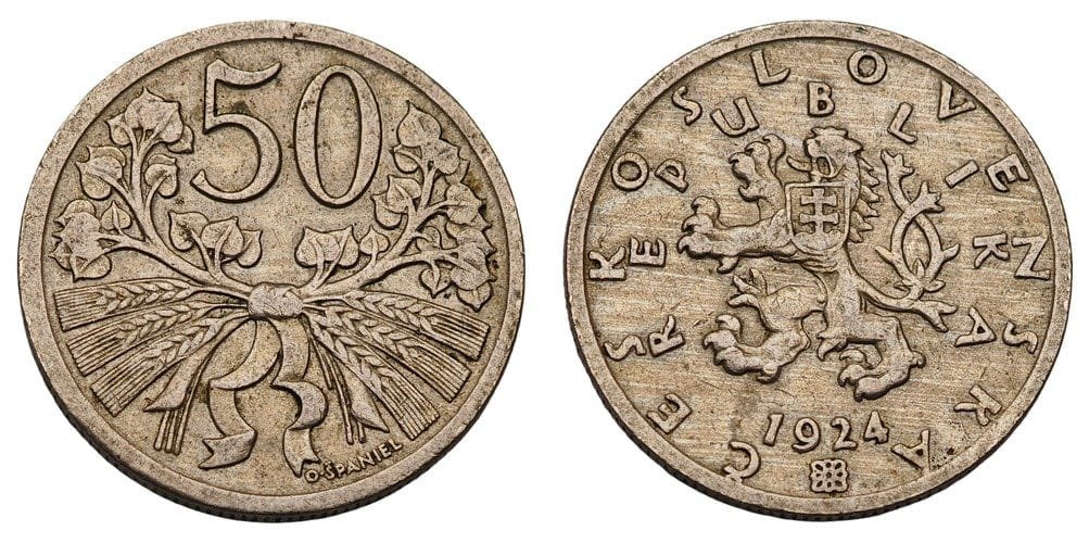 CZECHOSLOVAKIA 50 haleru 1924 VF