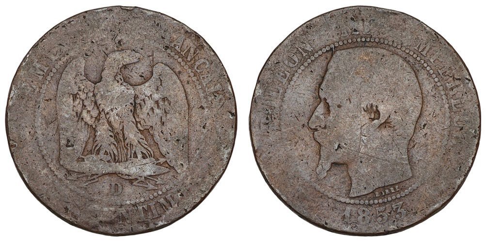 FRANCE 10 centimes 1853D F