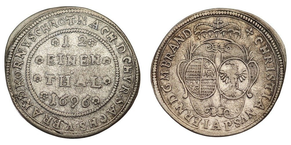 GERMANY 1/12 thaler 1696 / Brandenburg-Bayreuth / Silver / VF+